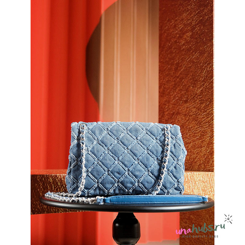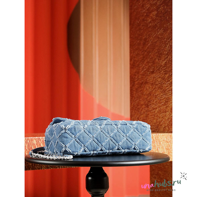 Chanel Medium Flap Bag Light Blue Denim Siver 25cm