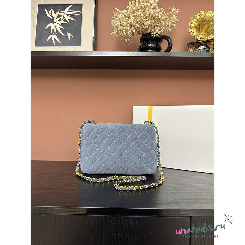 Chanel Medium Flap Bag Suede blue 24x17x7cm - Unahubs