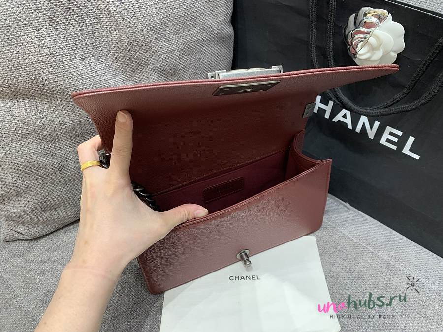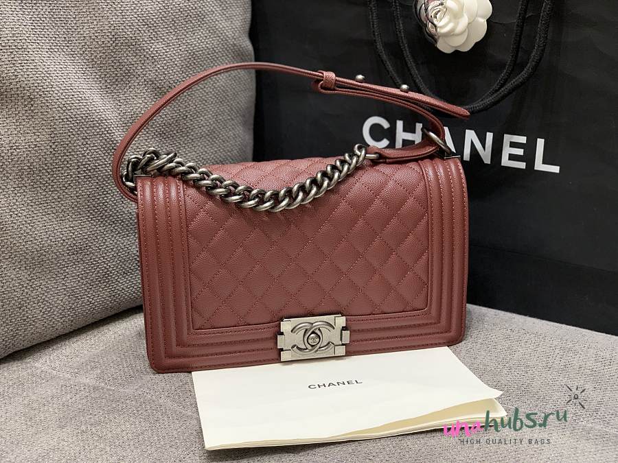 Chanel Medium Leboy Bag Burgundy Caviar Silver 25cm