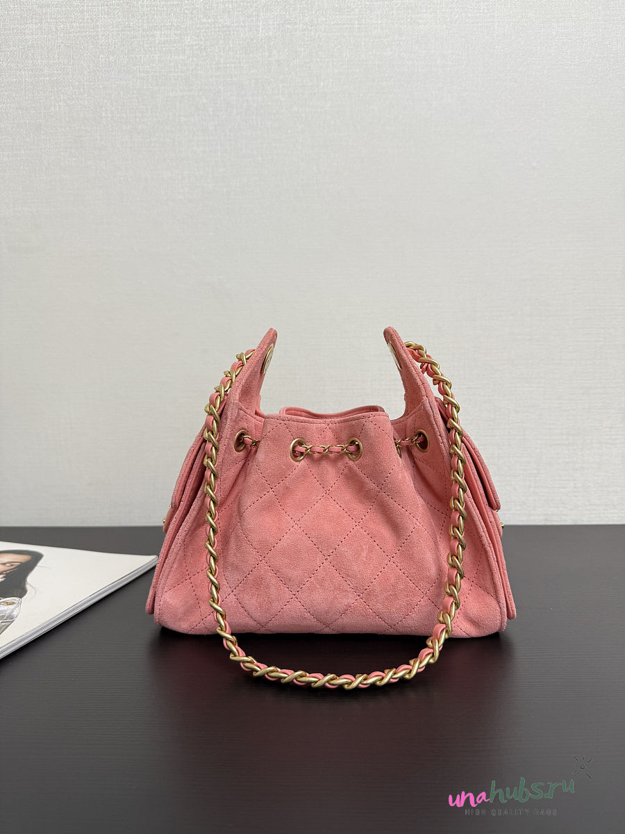 Chanel Mini 25 Handbag Pink Suede 22x21x10cm