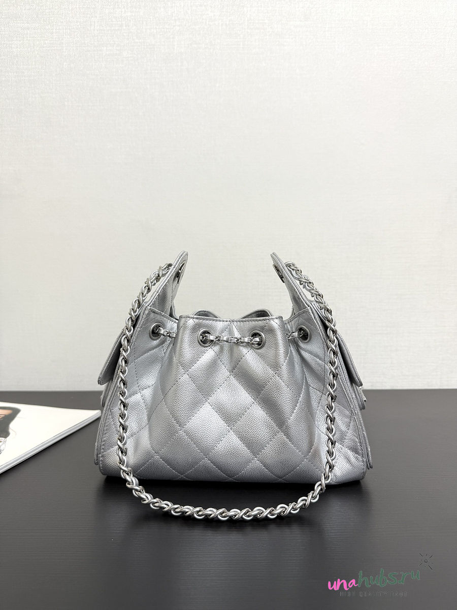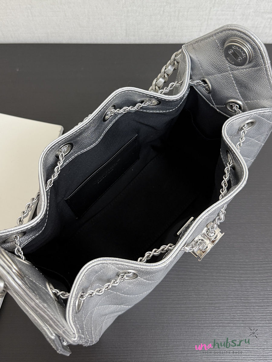 Chanel Mini 25 Handbag Silver Caviar 22x20x12.5cm