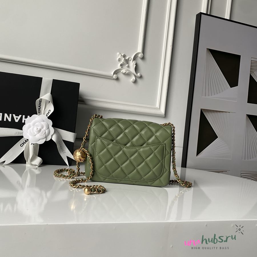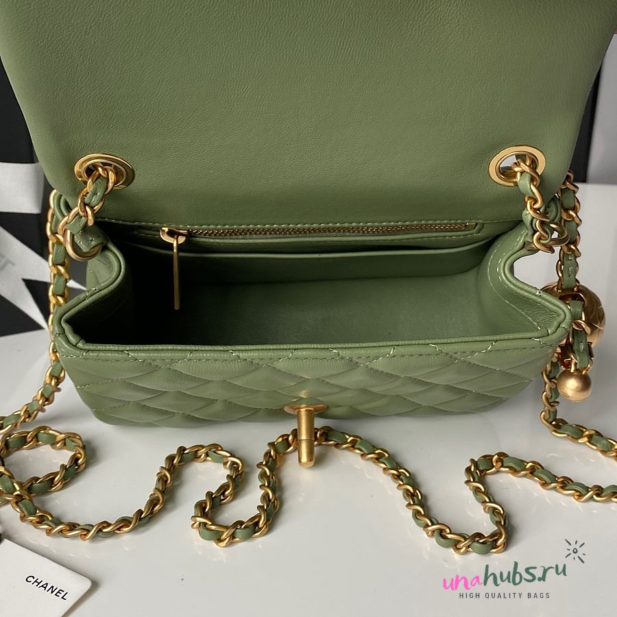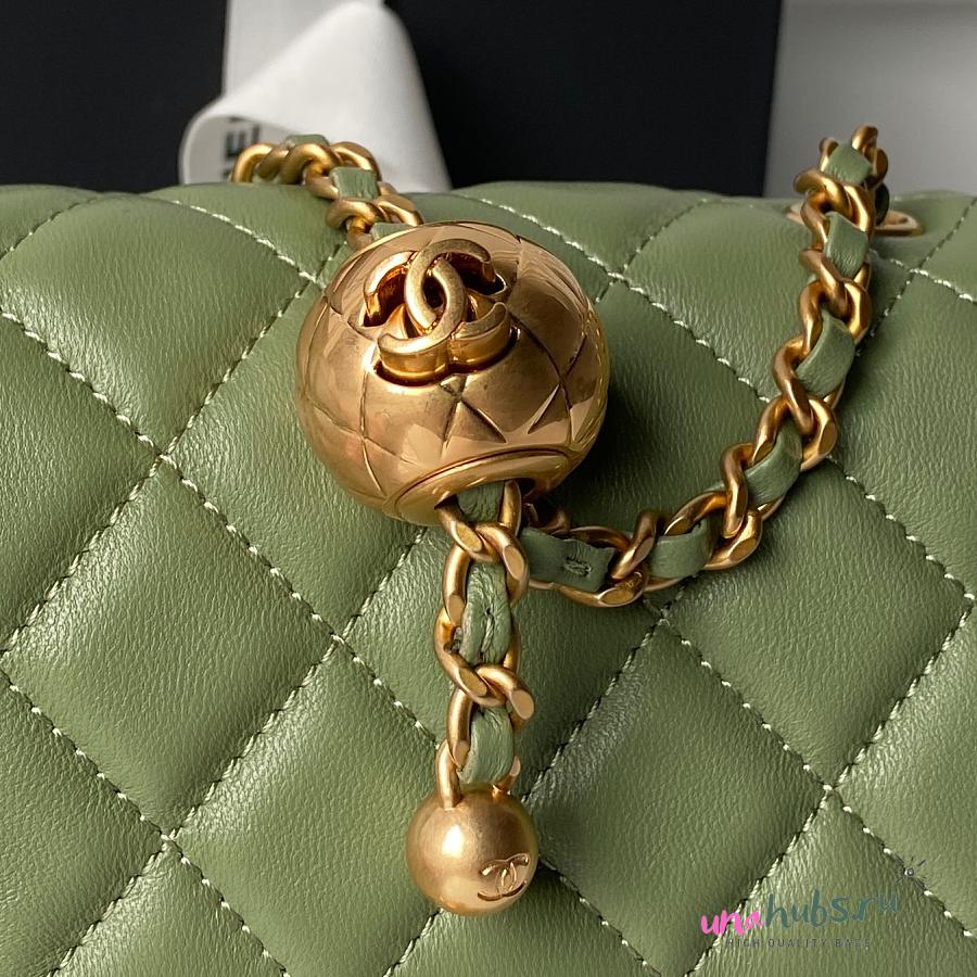 Chanel Mini Flap Bag Bell Green Lambskin 17cm