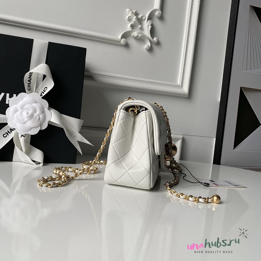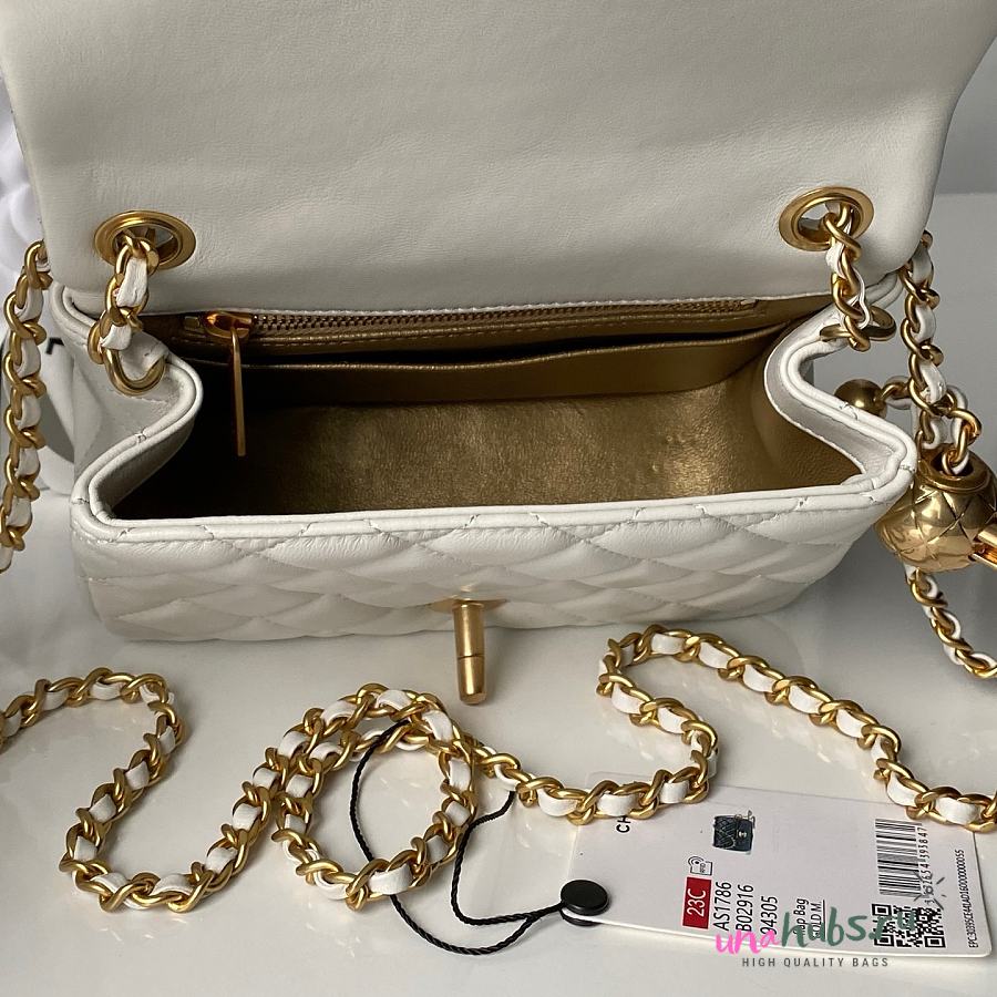Chanel Mini Flap Bag Bell White Lambskin 17cm
