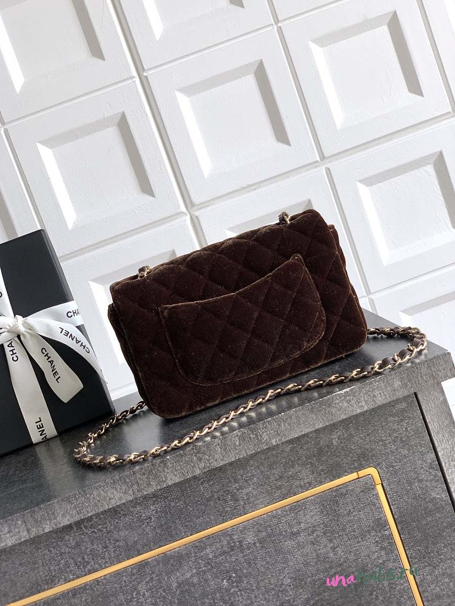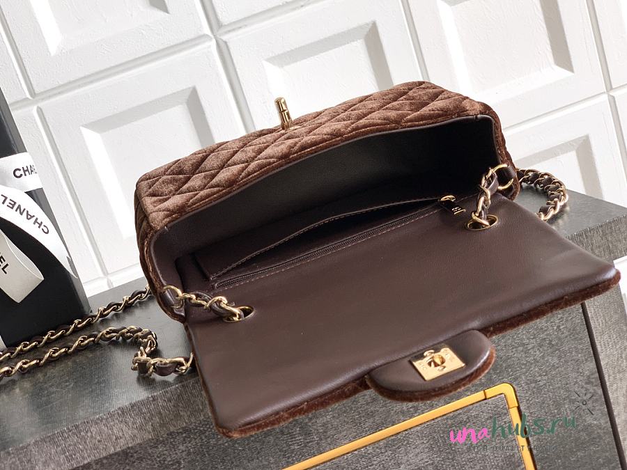 Chanel Mini Flap Bag Brown Velvet 20cm