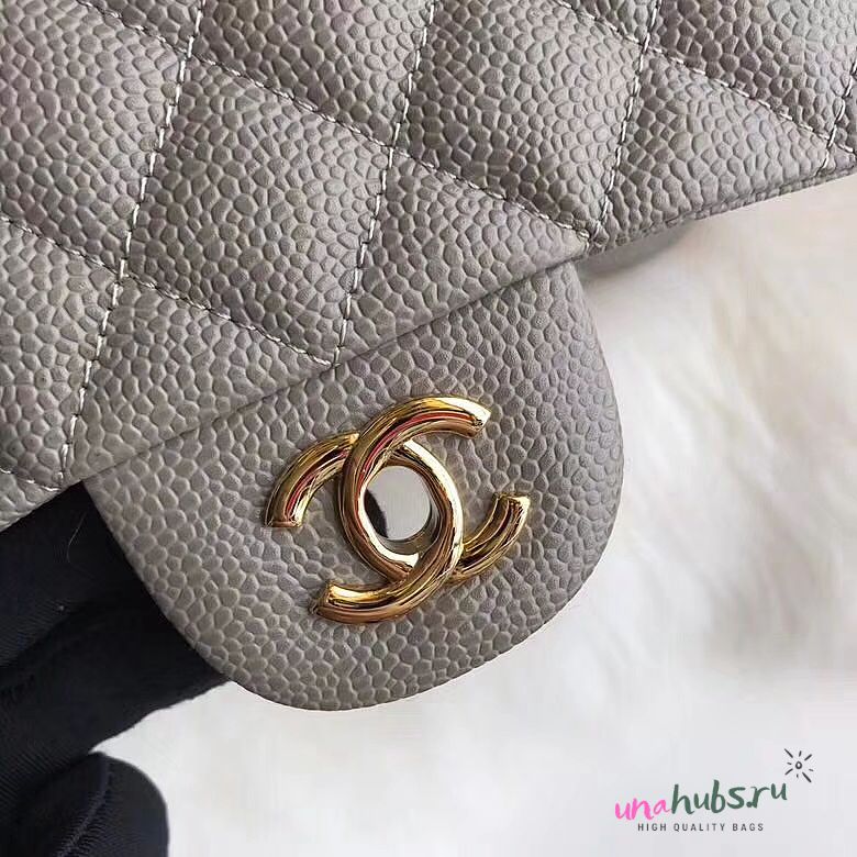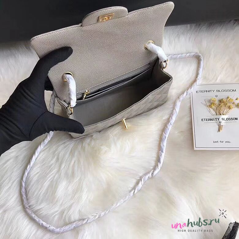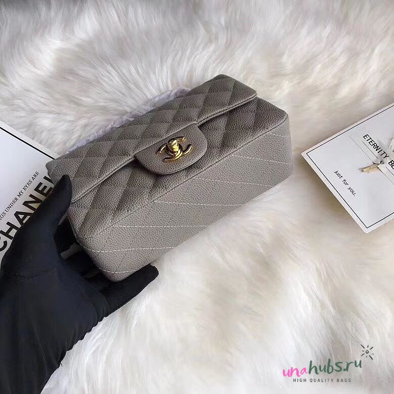 Chanel Mini Flap Bag Grey Caviar Gold 20cm