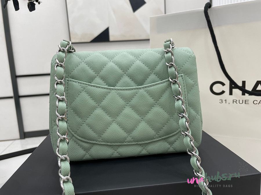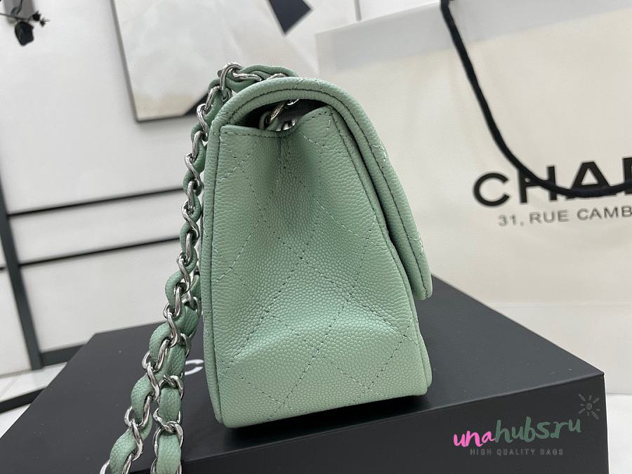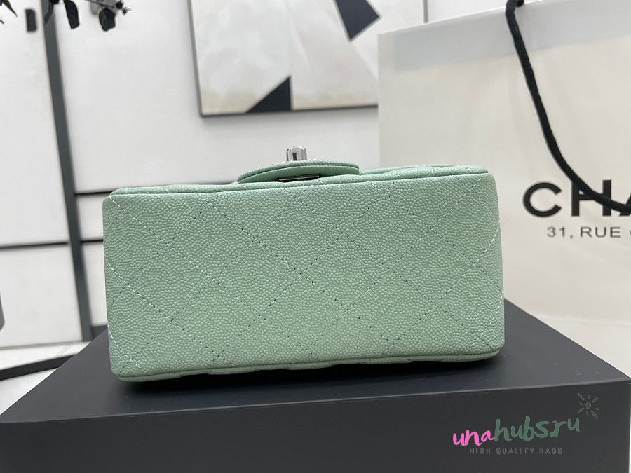 Chanel Mini Flap Bag Light Green Silver Caviar 17cm - Unahubs