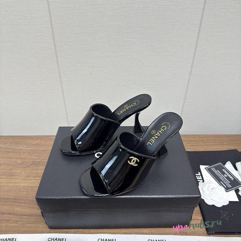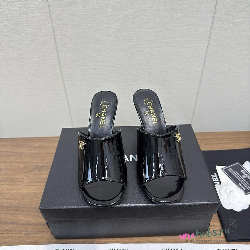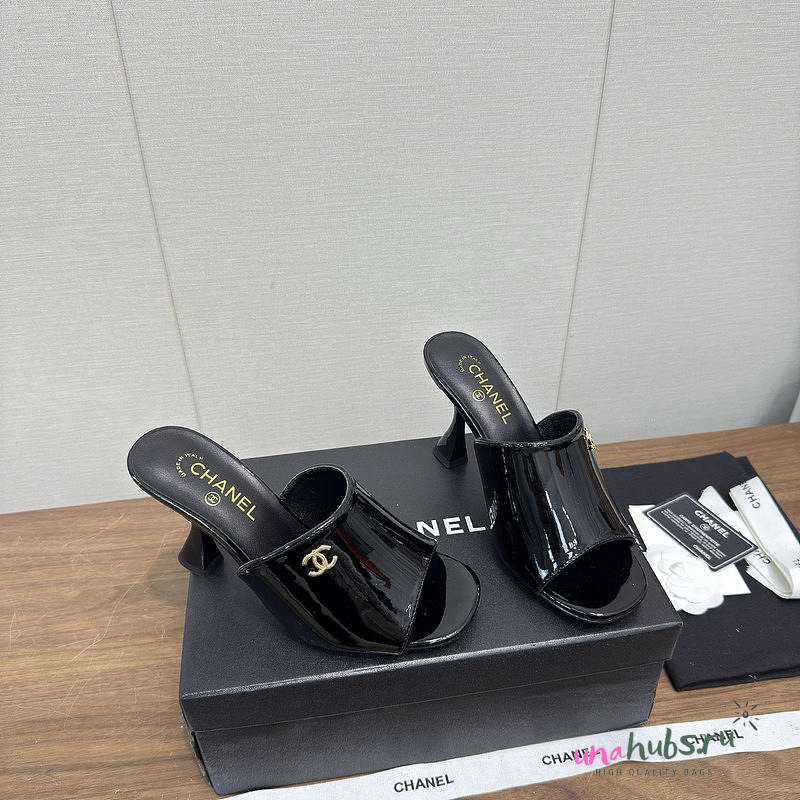 Chanel Patent Leather Mules With CC Logo In Black 9cm
