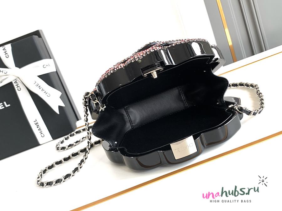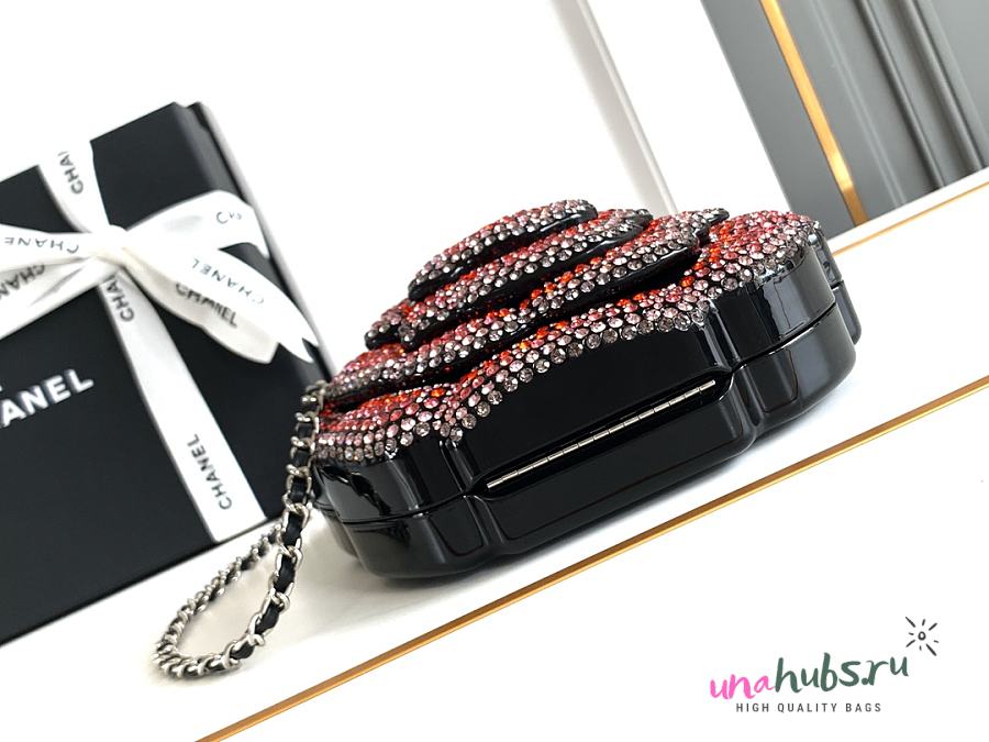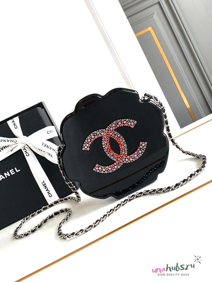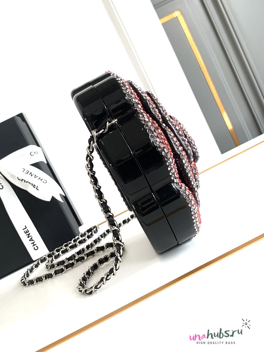 Chanel Plexiglass Strass Camellia Minaudiere Clutch Pink Black