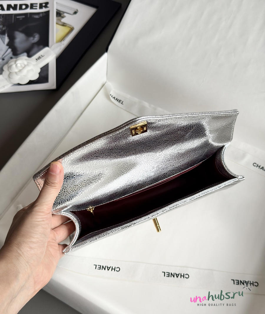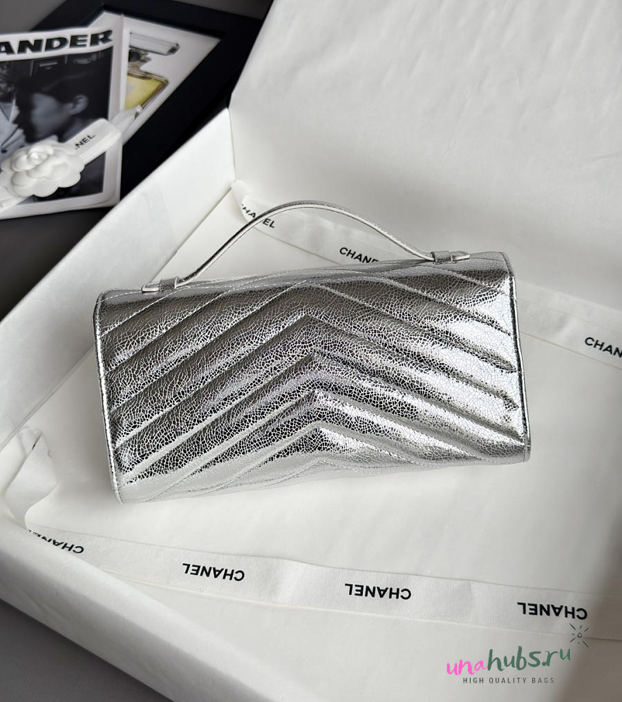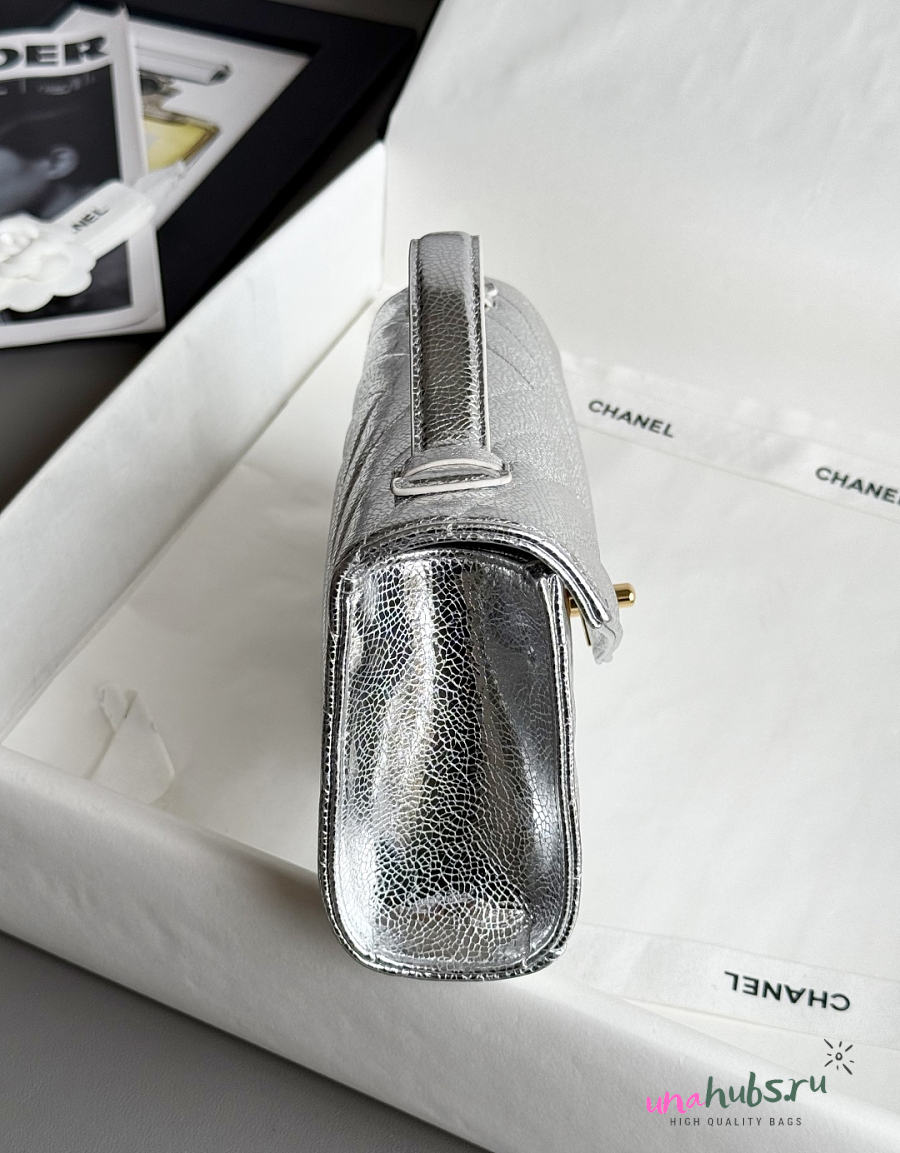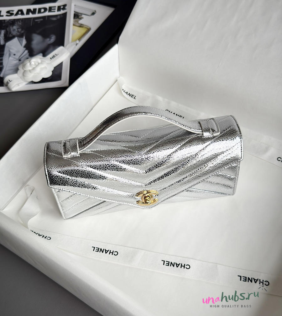 Chanel Pouch Bag Silver Lambskin 25x13x6.5cm