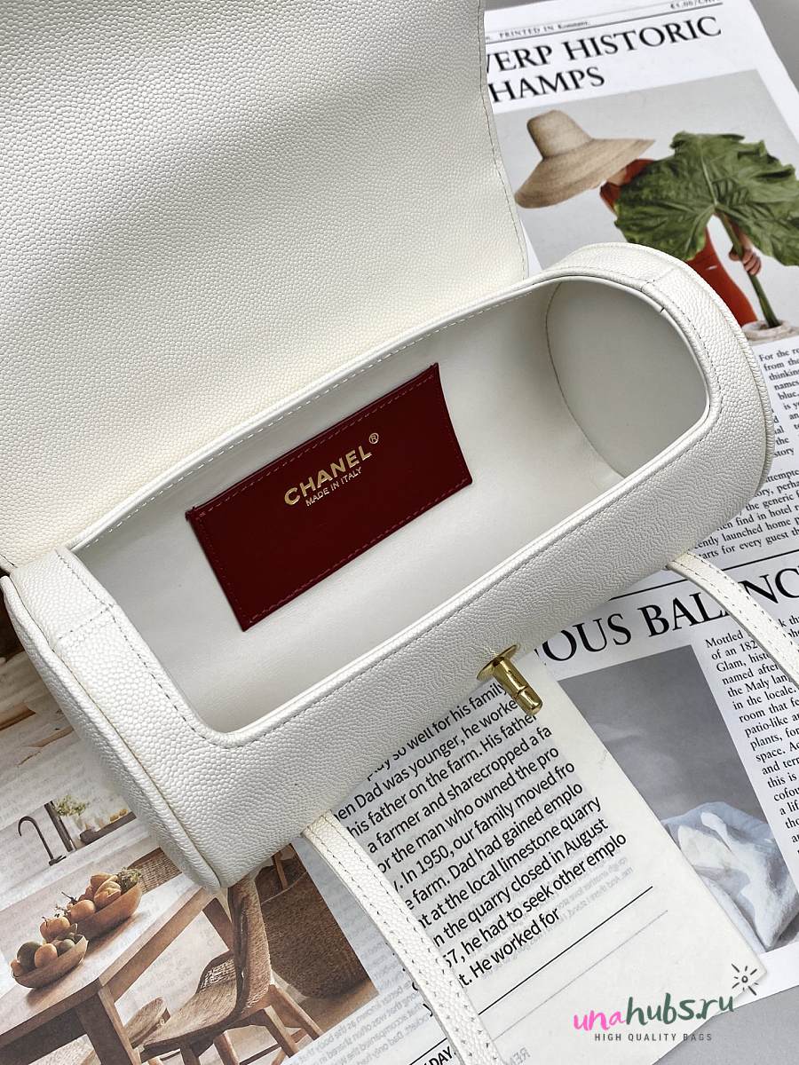 Chanel Preppy Coco Bowling Bag White Caviar 20x10x11cm - Unahubs