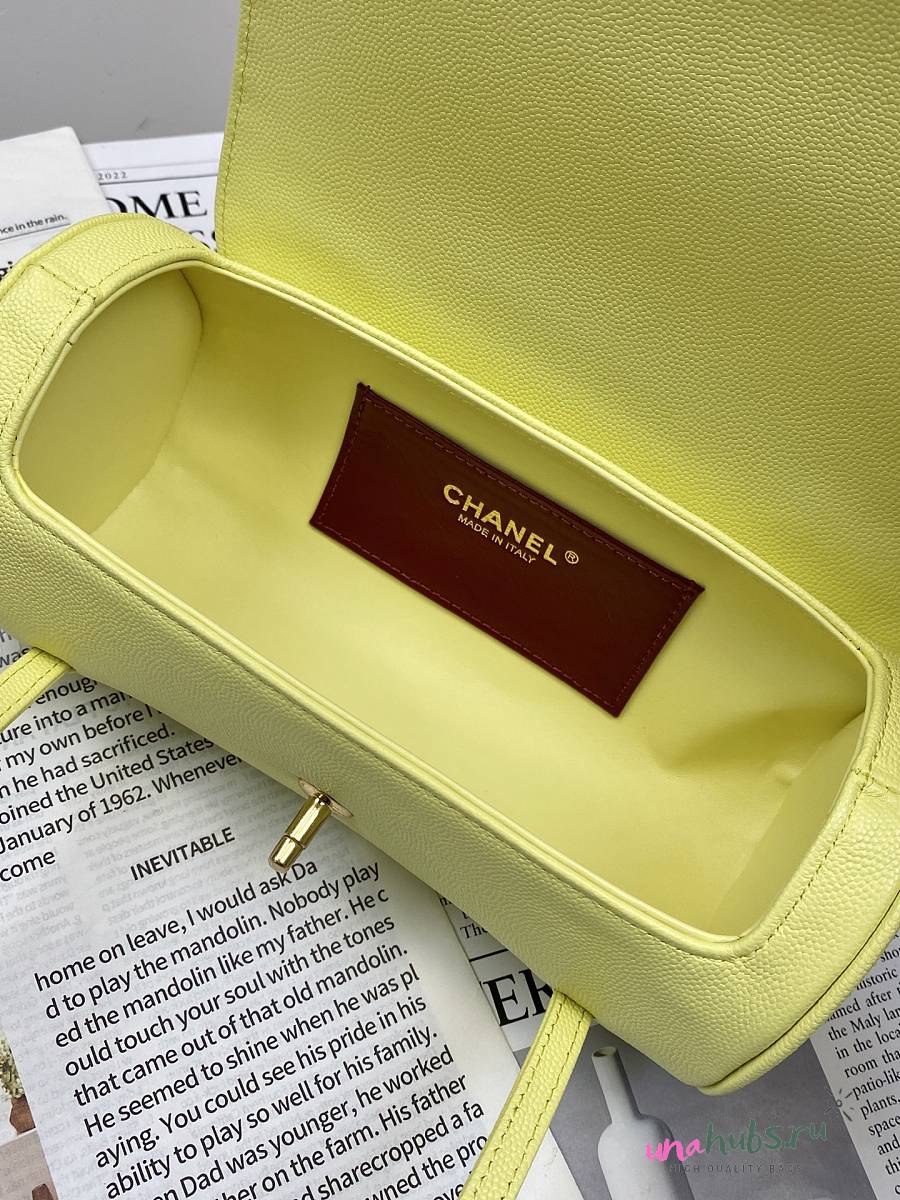 Chanel Preppy Coco Bowling Bag yellow Caviar 20x10x11cm - Unahubs