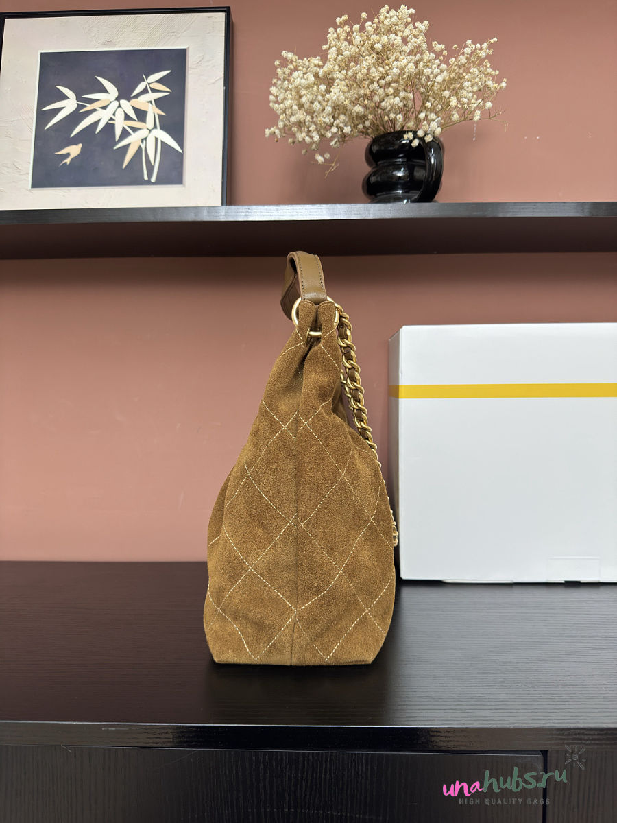 Chanel Shopping Bag Brown Suede 35x29x13cm