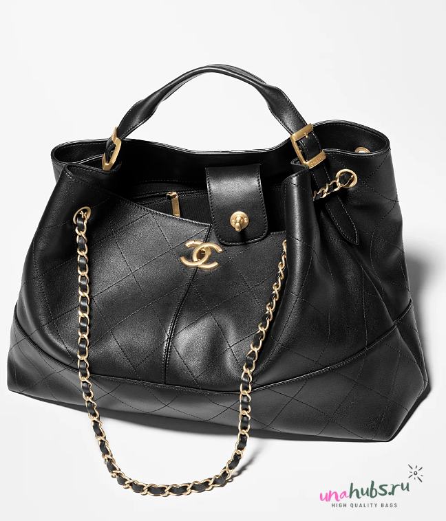 Chanel Shopping bag Calfskin and Gold Plated Metal Black - 28 x 40 x 15cm