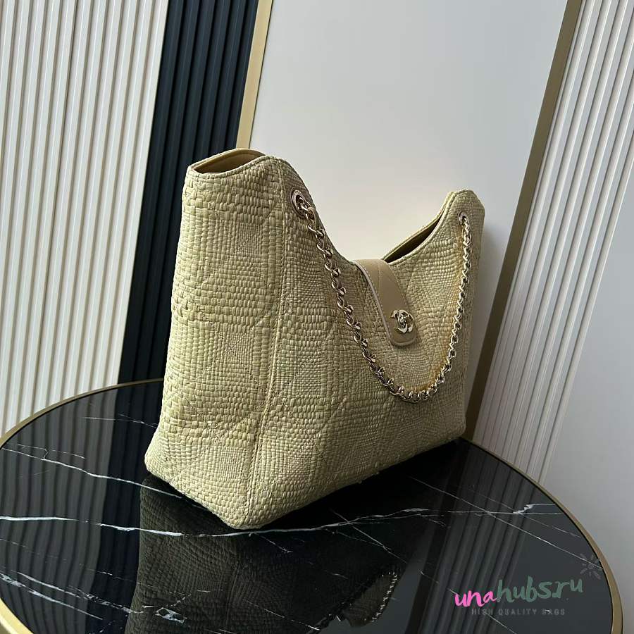 Chanel Shopping Tote Bag Beige Raffia 54x33x15cm