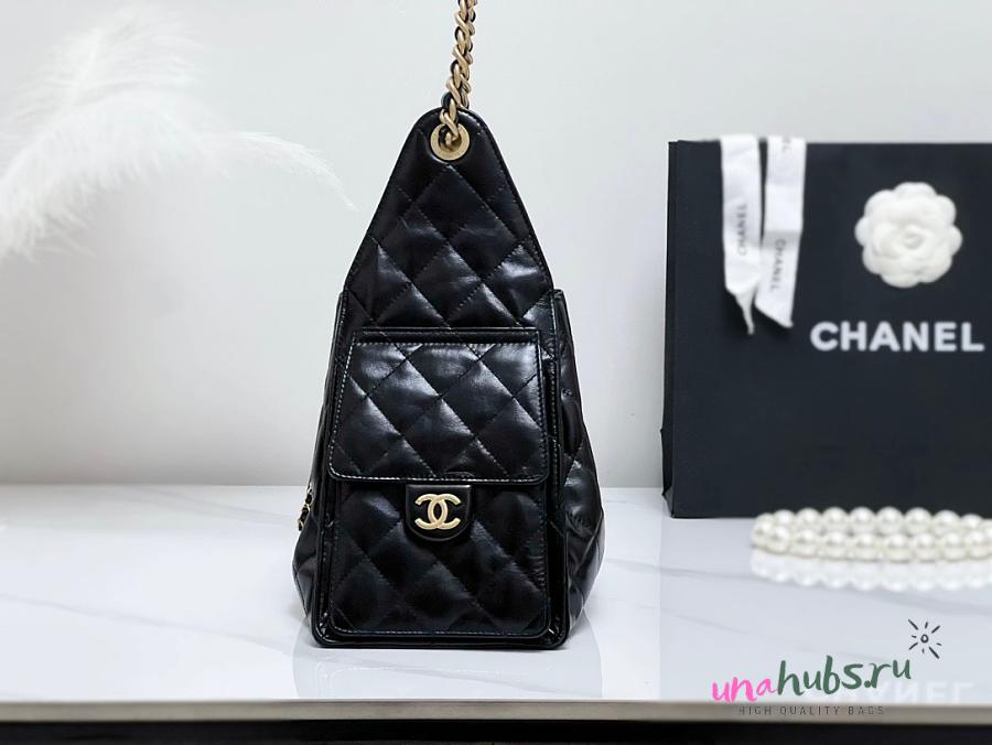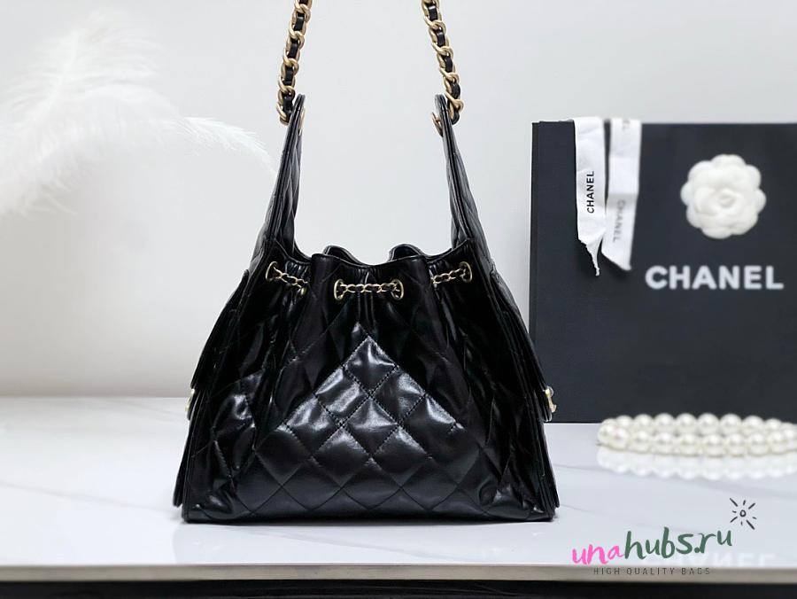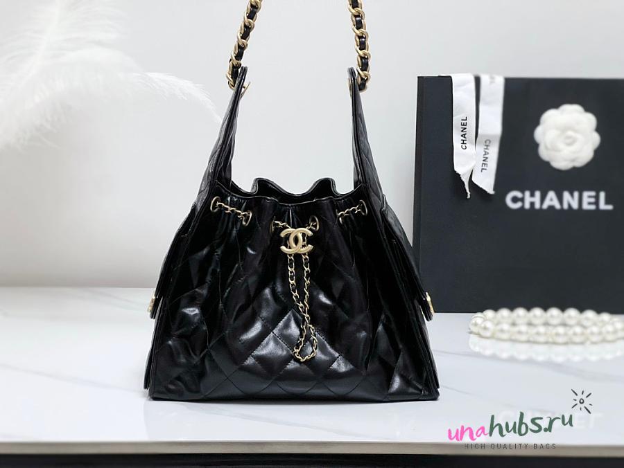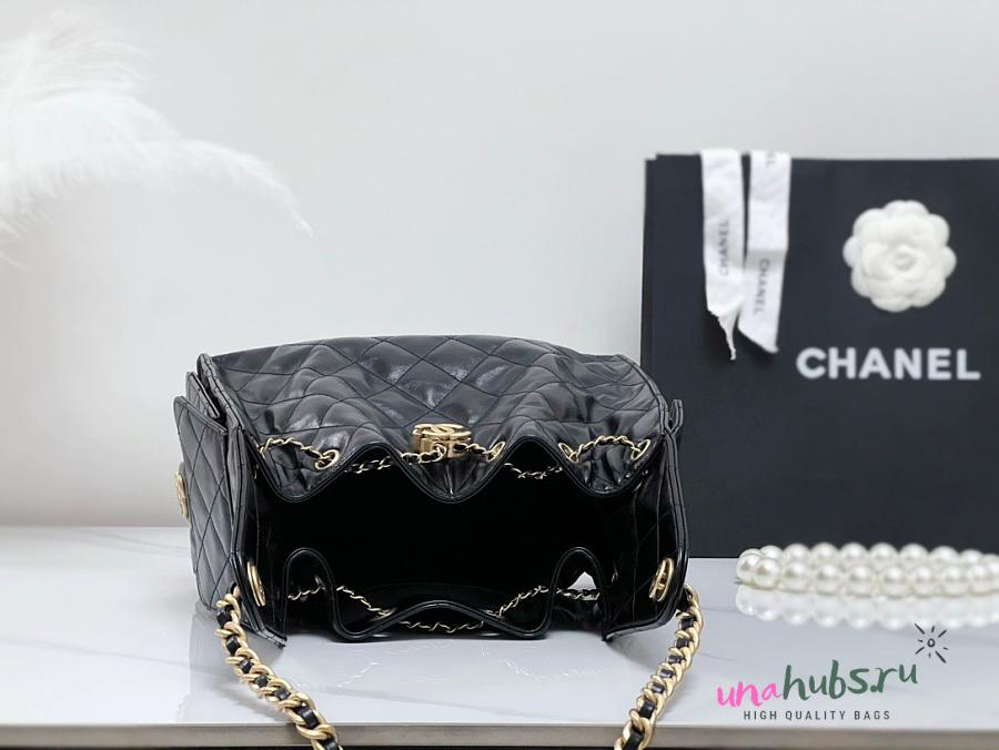 Chanel Small 25 Handbag Black Gold Lambskin 30x26x14cm