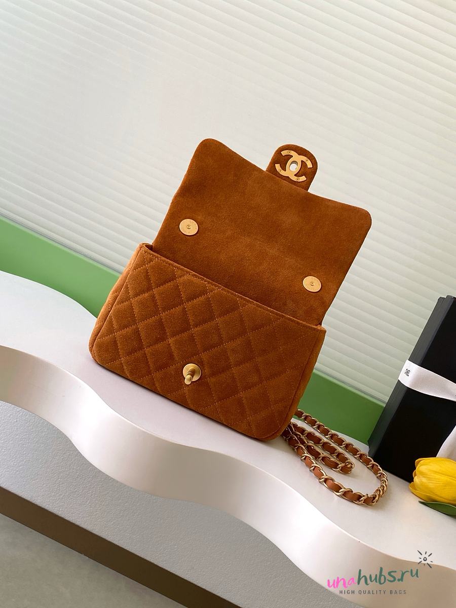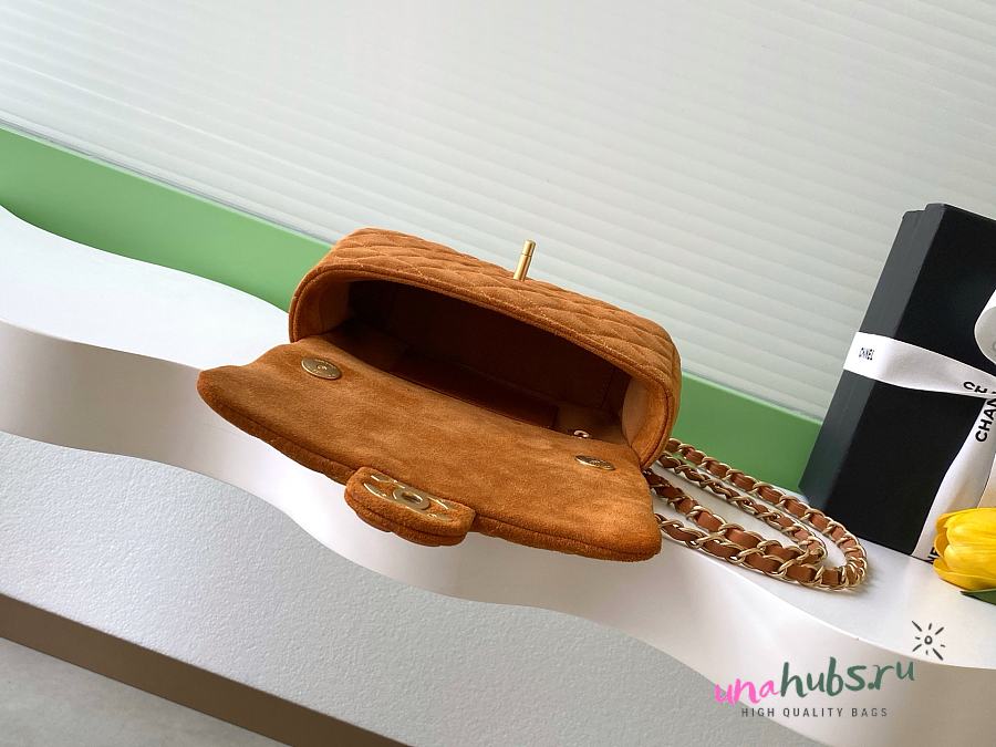 Chanel Small Flap Bag Brown Suede 20x14x6cm