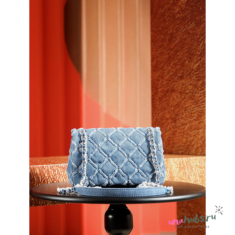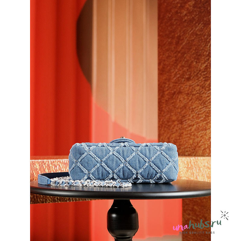 Chanel Small Flap Bag Light Blue Denim Siver 20cm