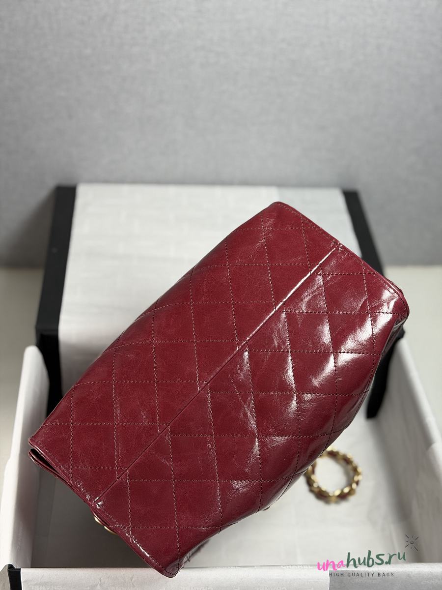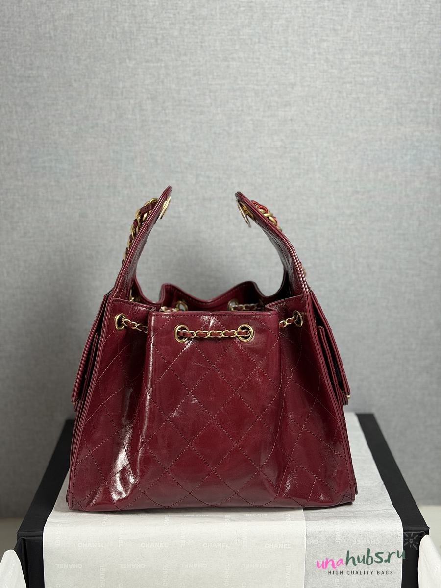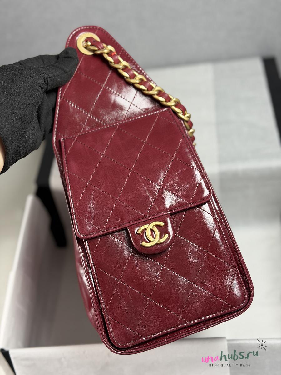 Chanel Small Handbag Shiny Crumpled Calfskin burgundy 30x26x14cm - Unahubs