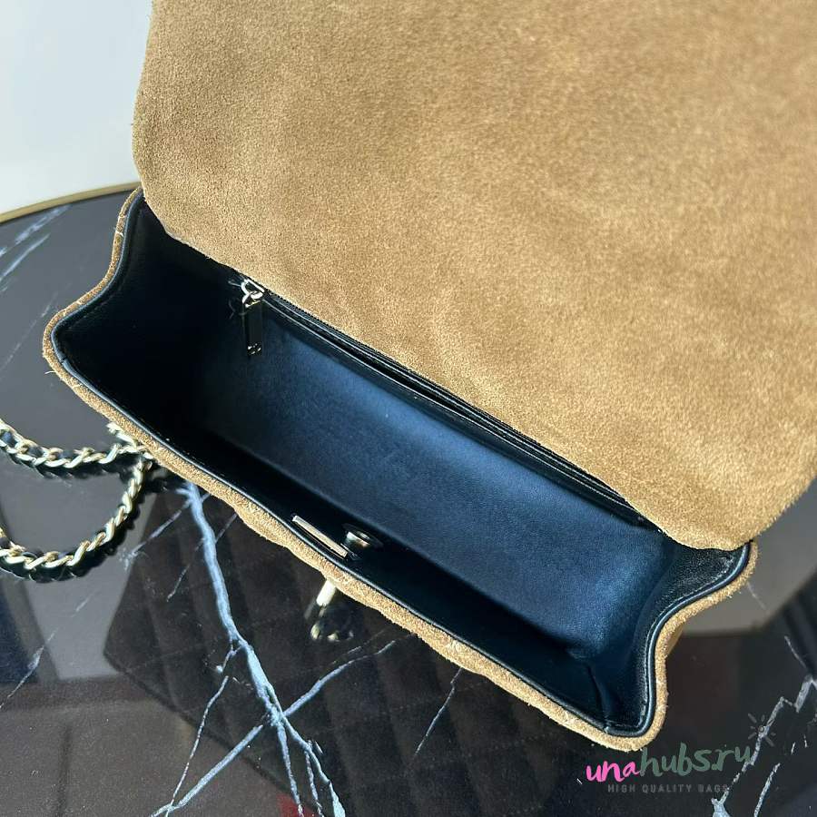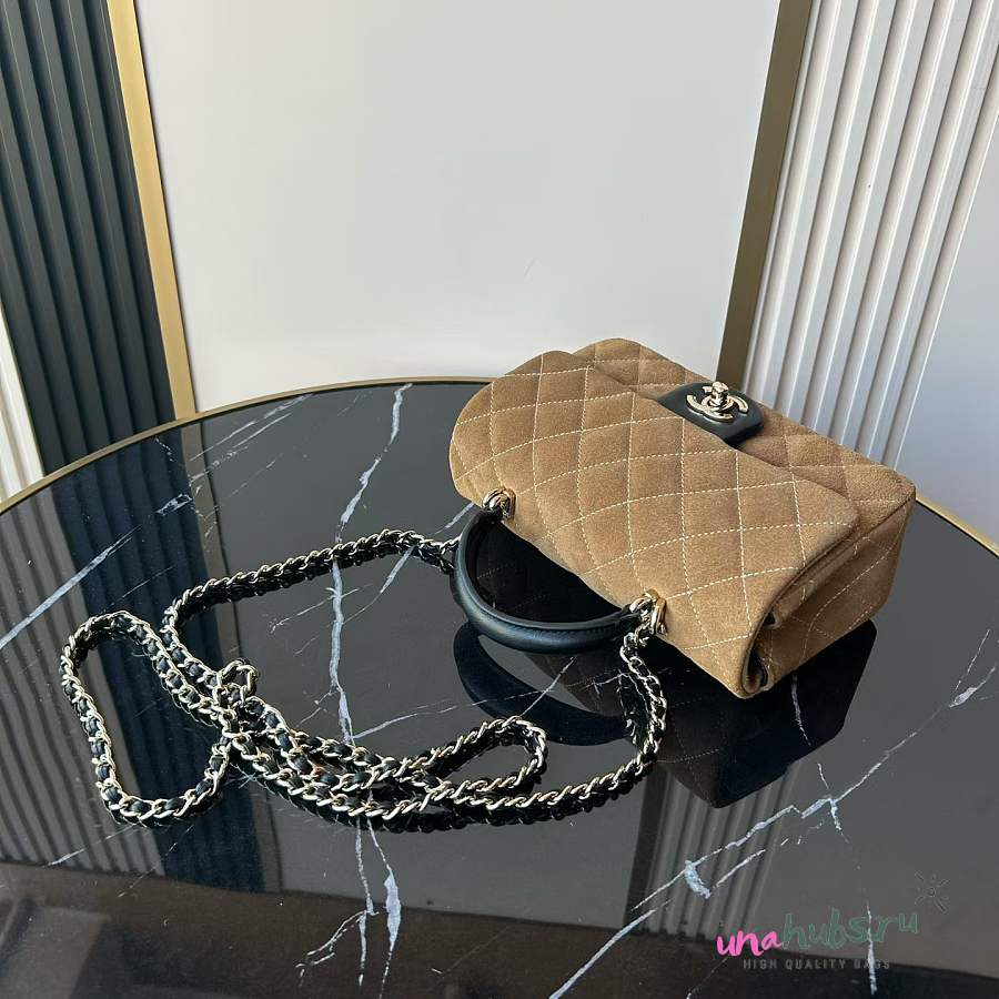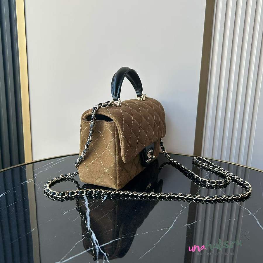 Chanel Top Handle Brown Black Suede 20x12x7cm