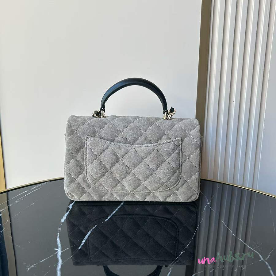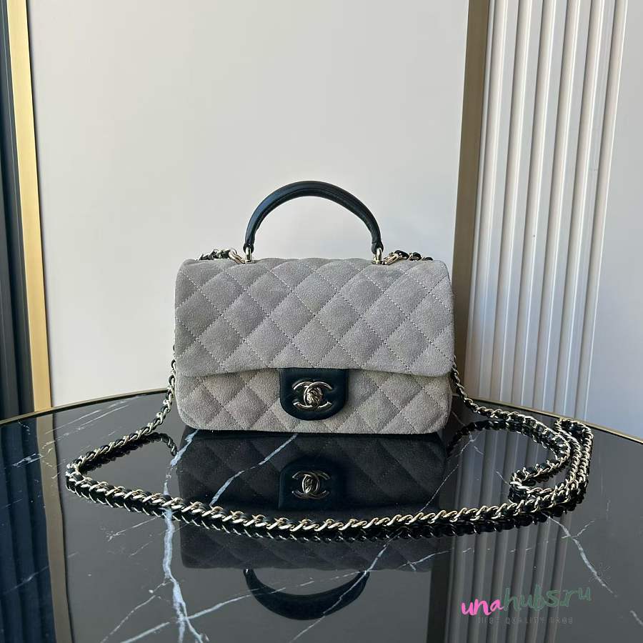 Chanel Top Handle Grey Black Suede 20x12x7cm