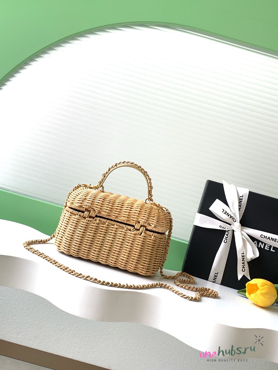 Chanel Vanity Case Braided Rattan Beige 19.5x11.5x11cm