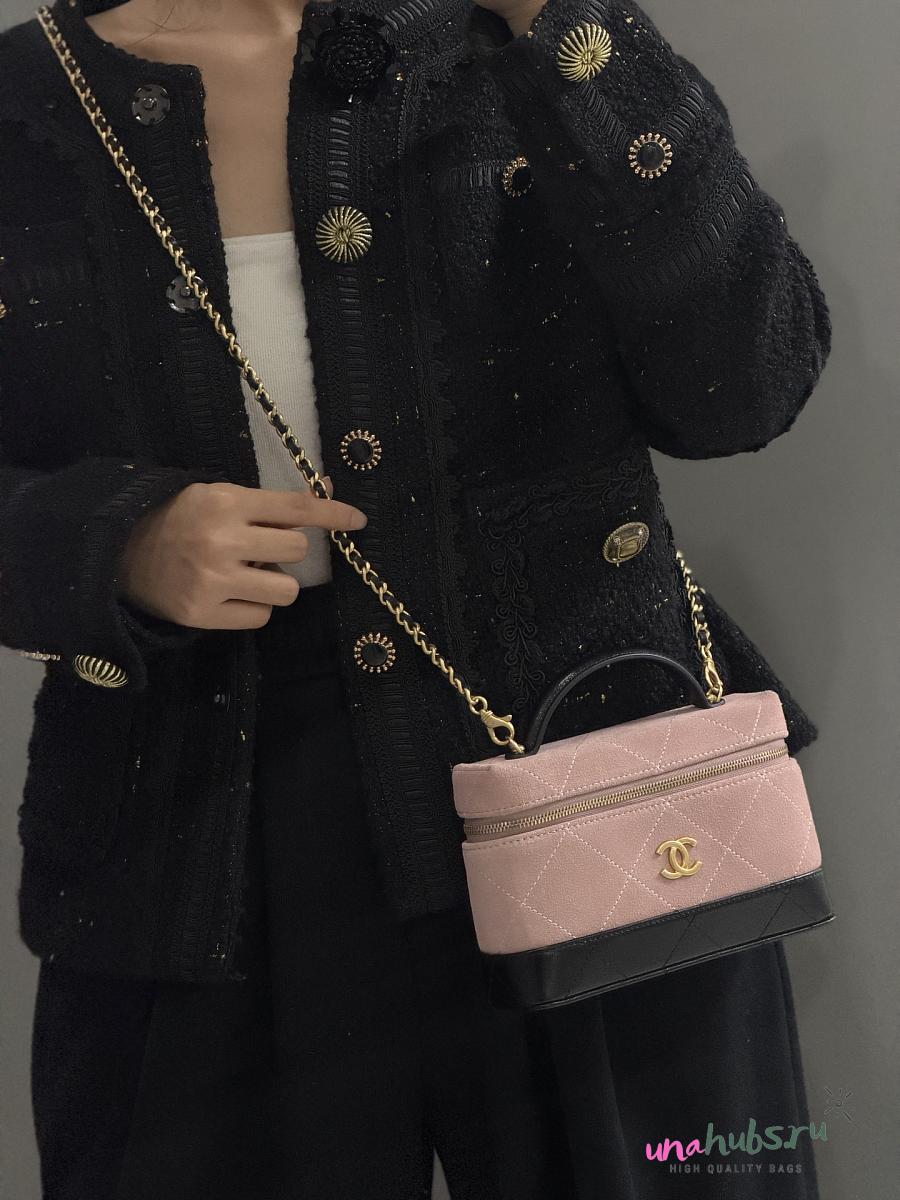 Chanel Vanity Suede Calfskin pink Black 17x19.5x5cm - Unahubs
