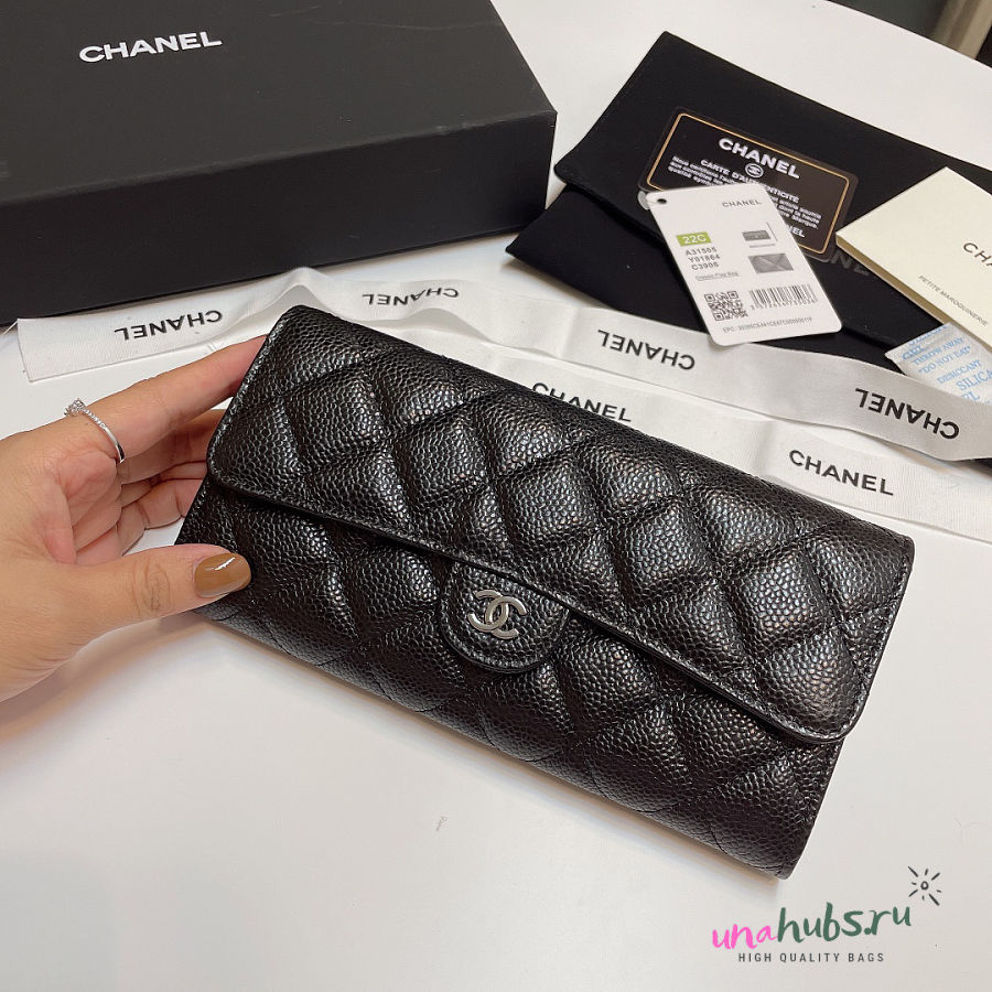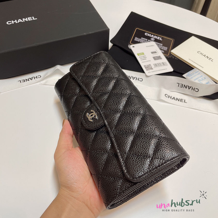 Chanel Wallet Black Caviar Silver 19cm