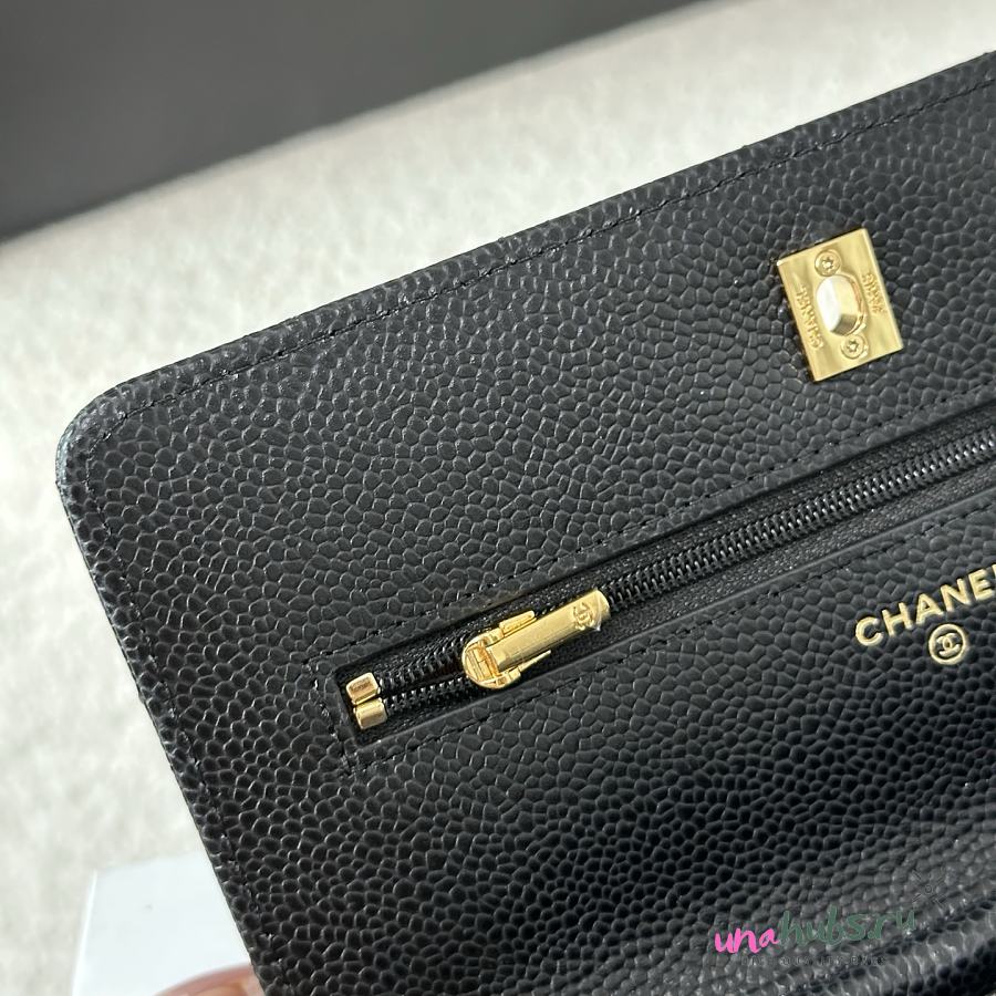 Chanel Wallet Woc Chain Black Caviar Gold 19cm