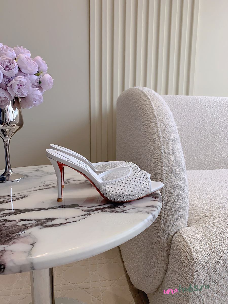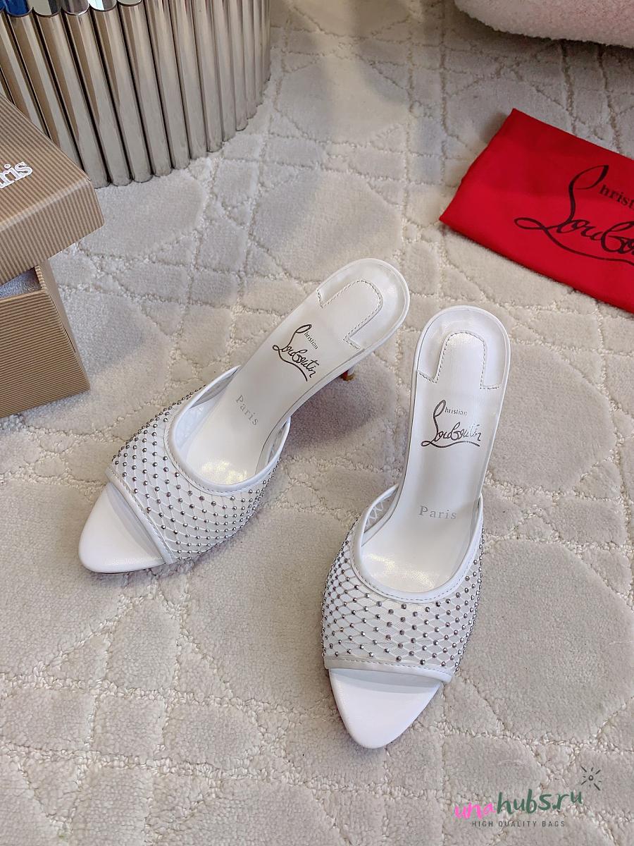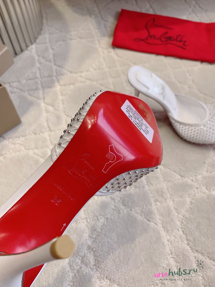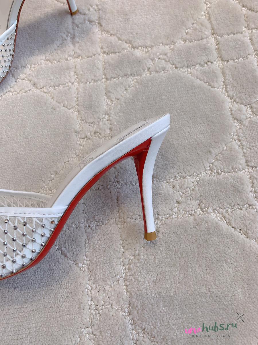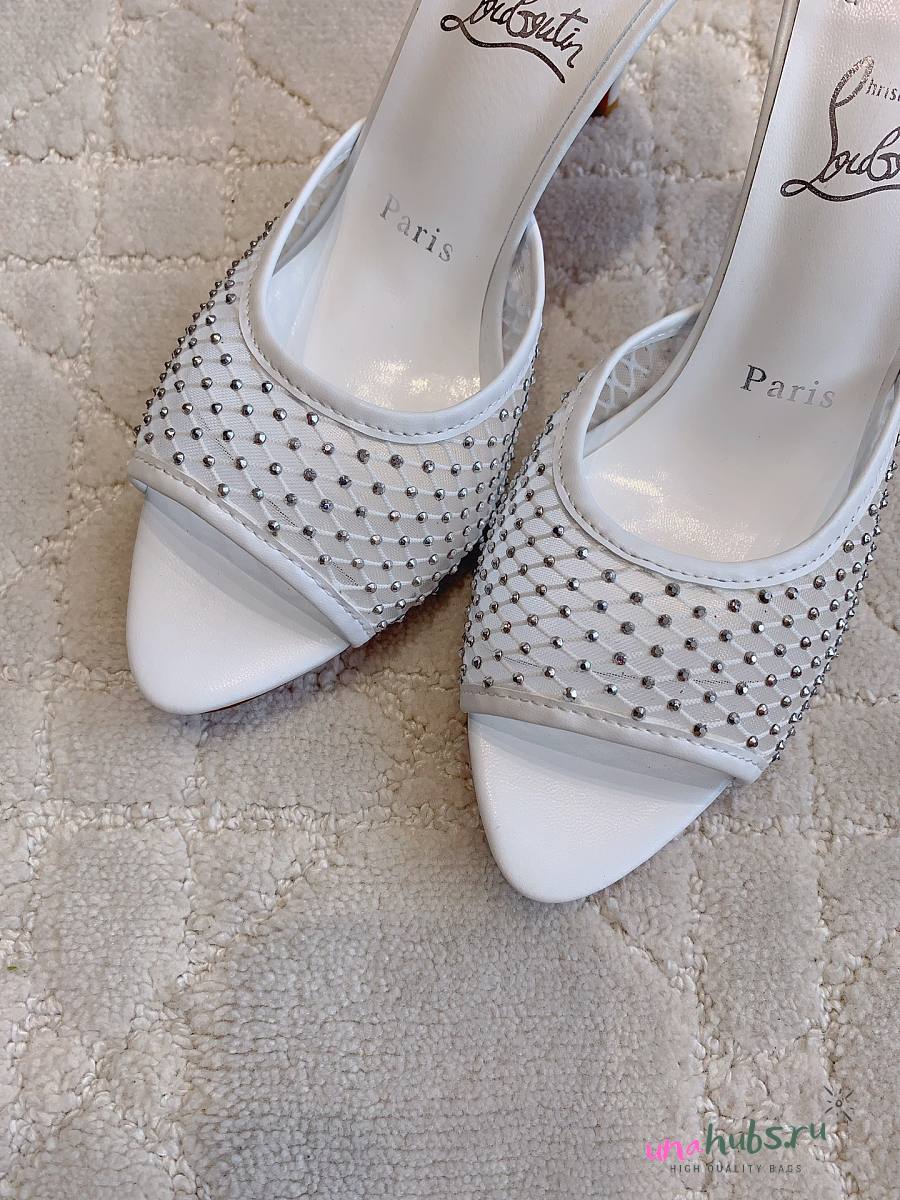 Christian Louboutin Apostropha Mesh Strass 85 White Mesh Mules