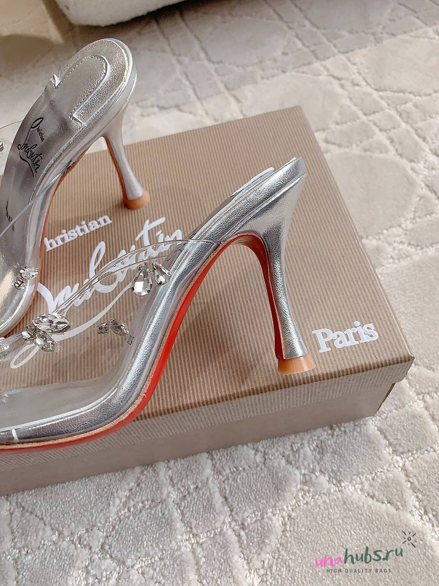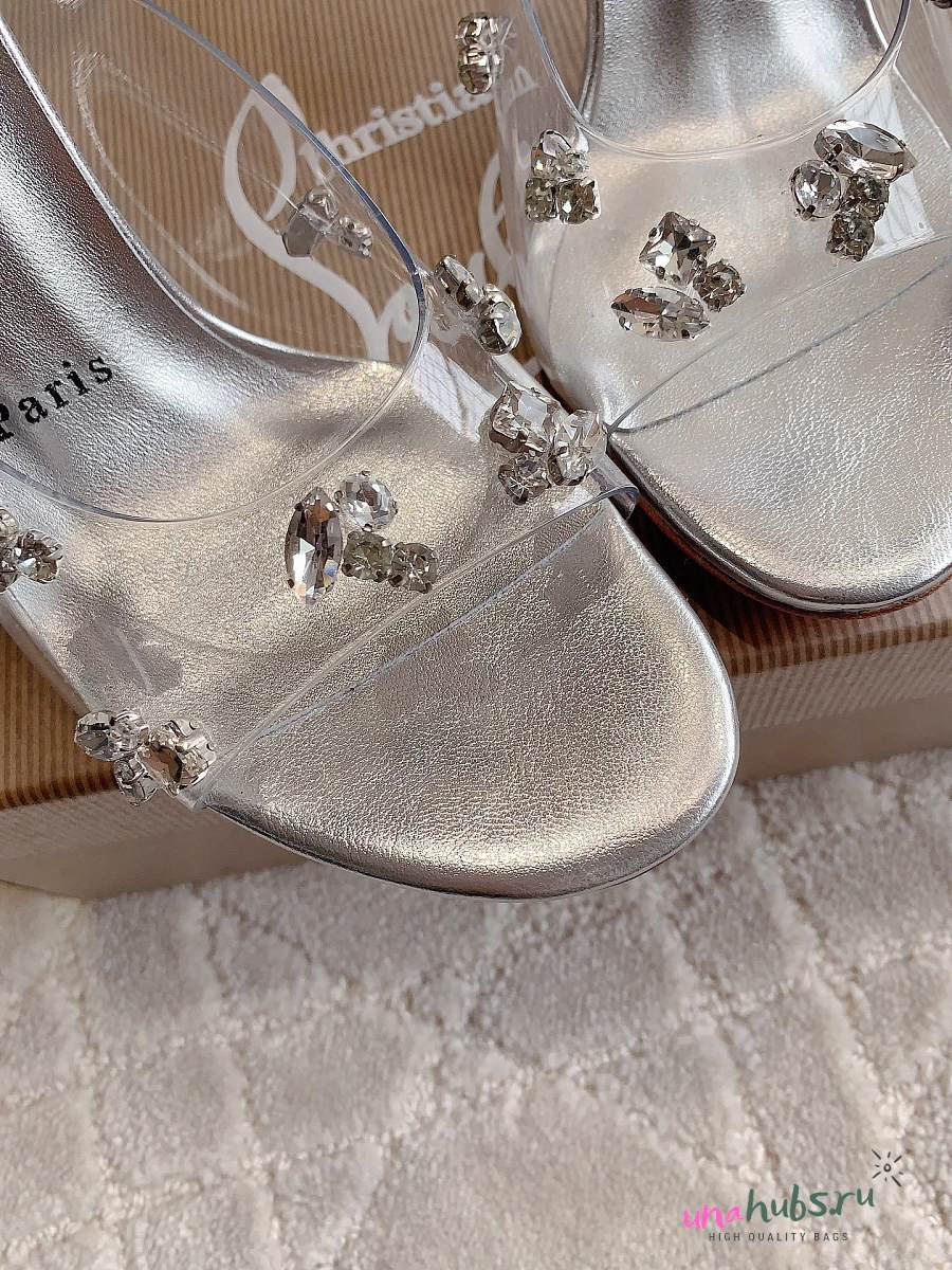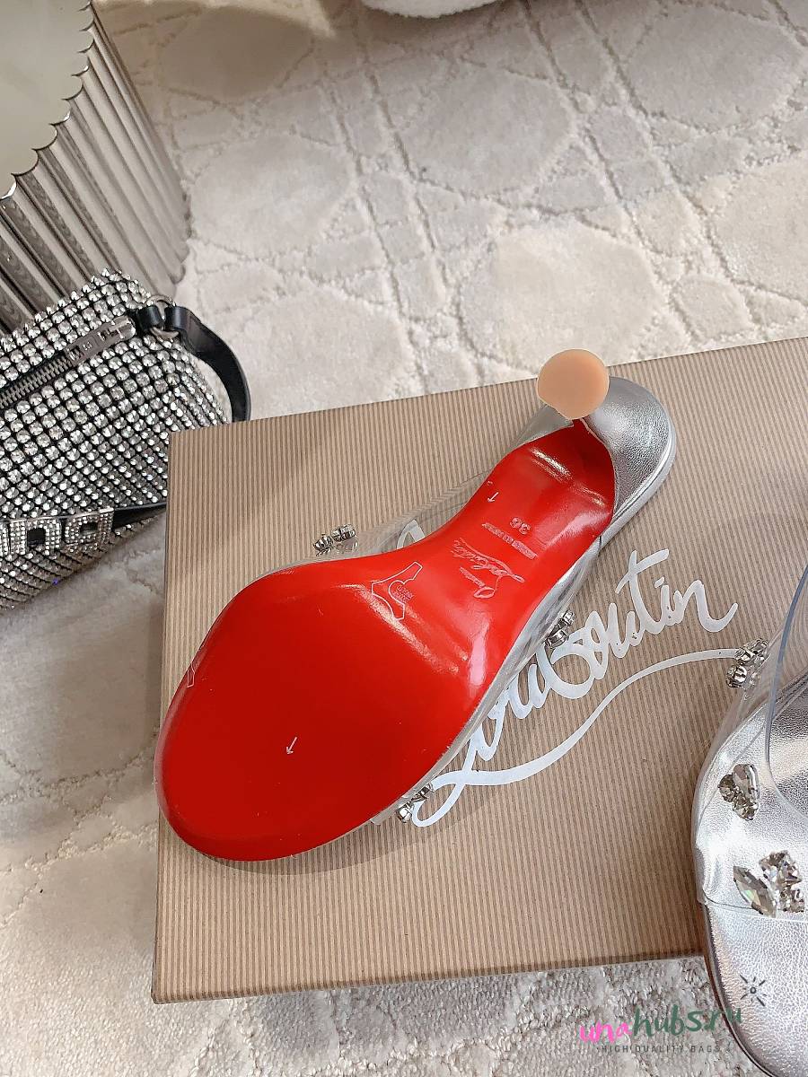 Christian Louboutin Degraqueen 85 Vinyl & Leather Sandal in Silver Metallic