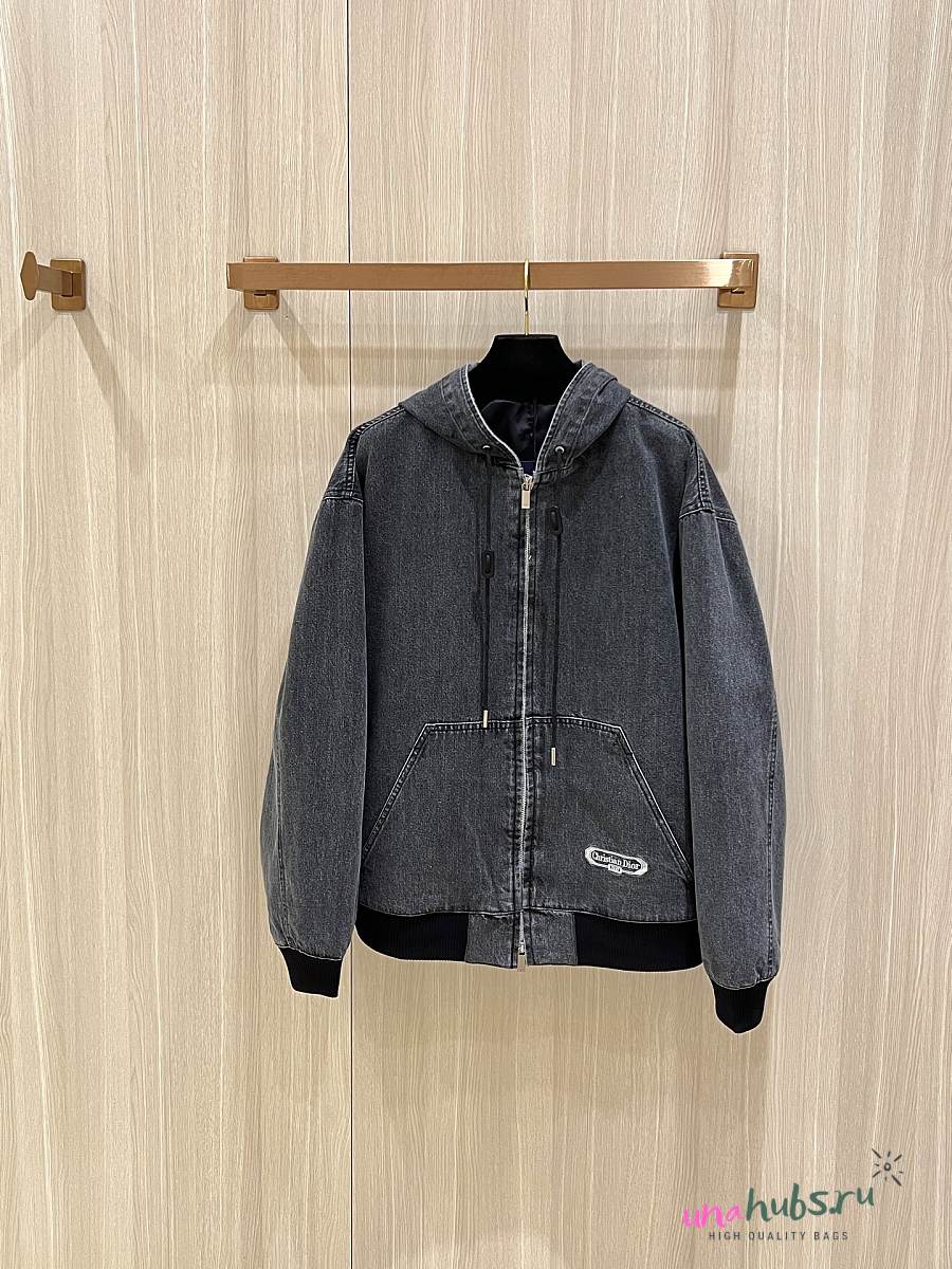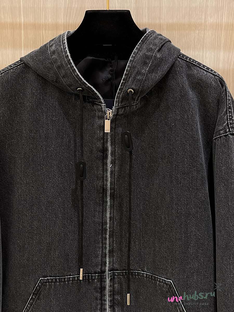 Dior CD Box Hooded Blouson Jacket Gray Cotton Twill