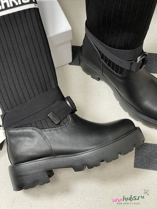 Dior D-Major Boot Black Calfskin with Black and White