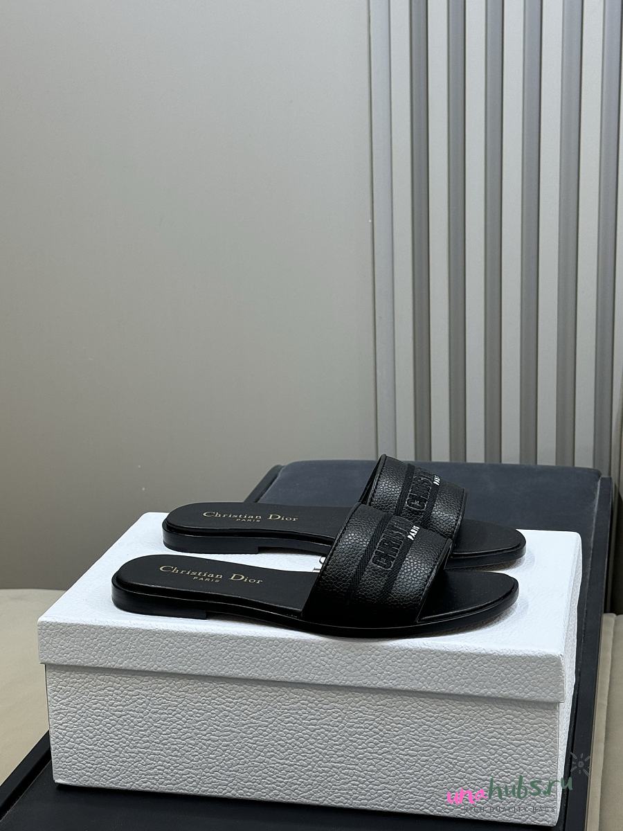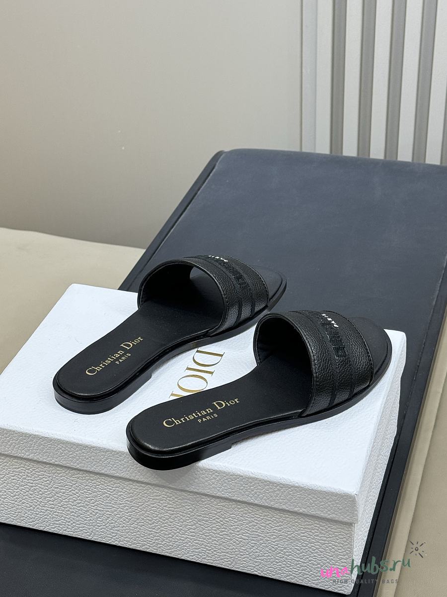 Dior Dway Slide Black Grained Calfskin