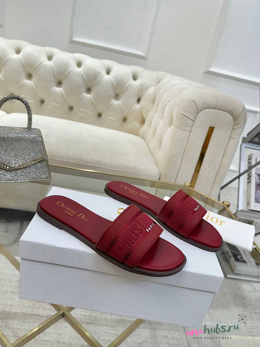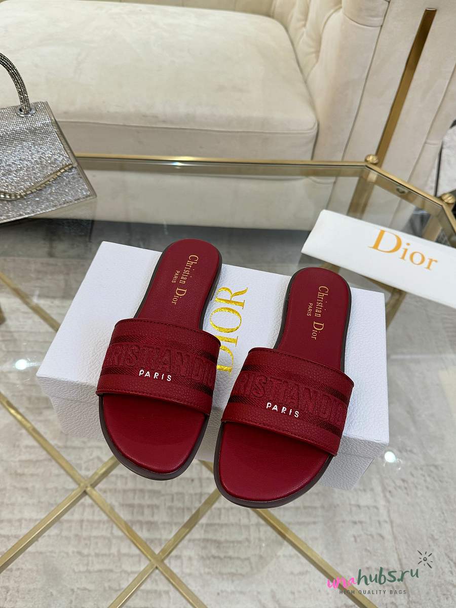 Dior Dway Slide Burgundy Grained Calfskin - Unahubs