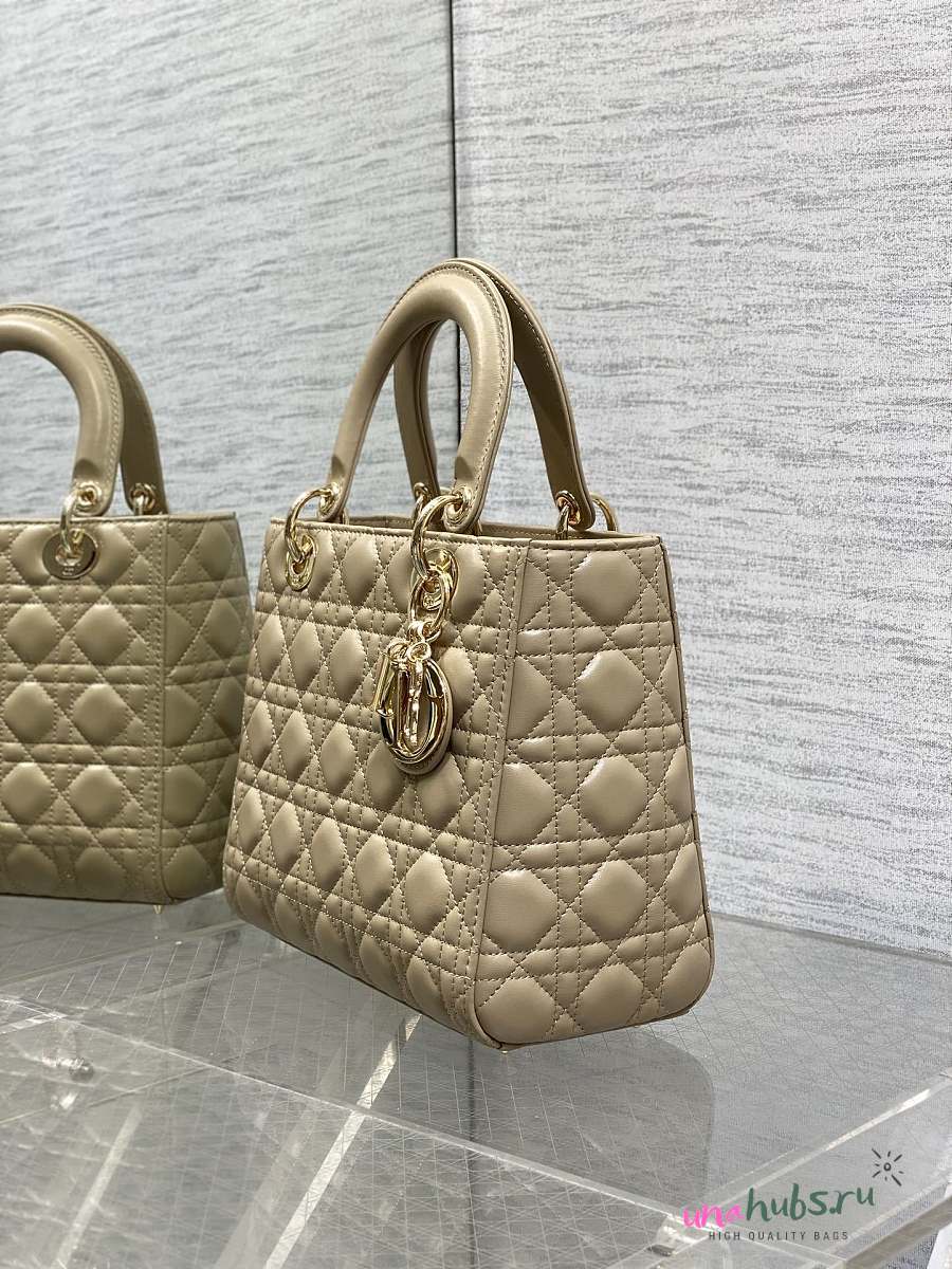 Dior Lady Medium Beige Cannage Lambskin - 24 x 20 x 12 cm