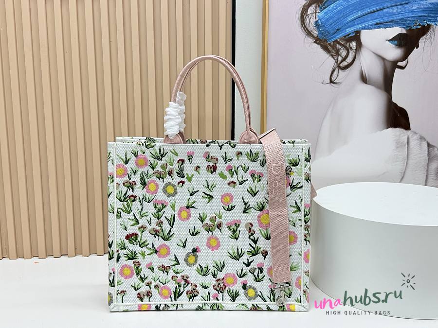 Dior Large Book Tote White Multicolor Daisy 41x14x32cm