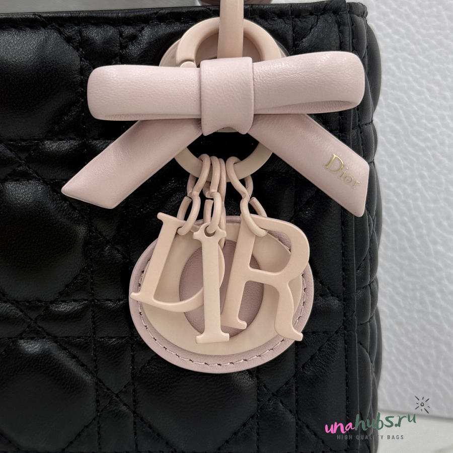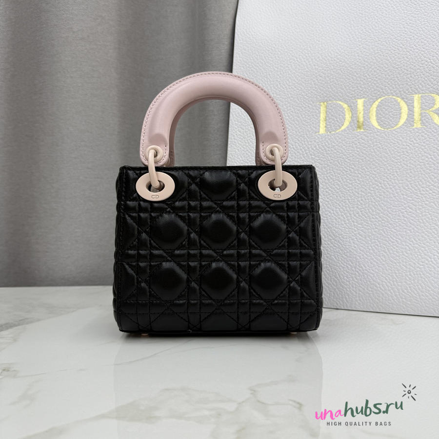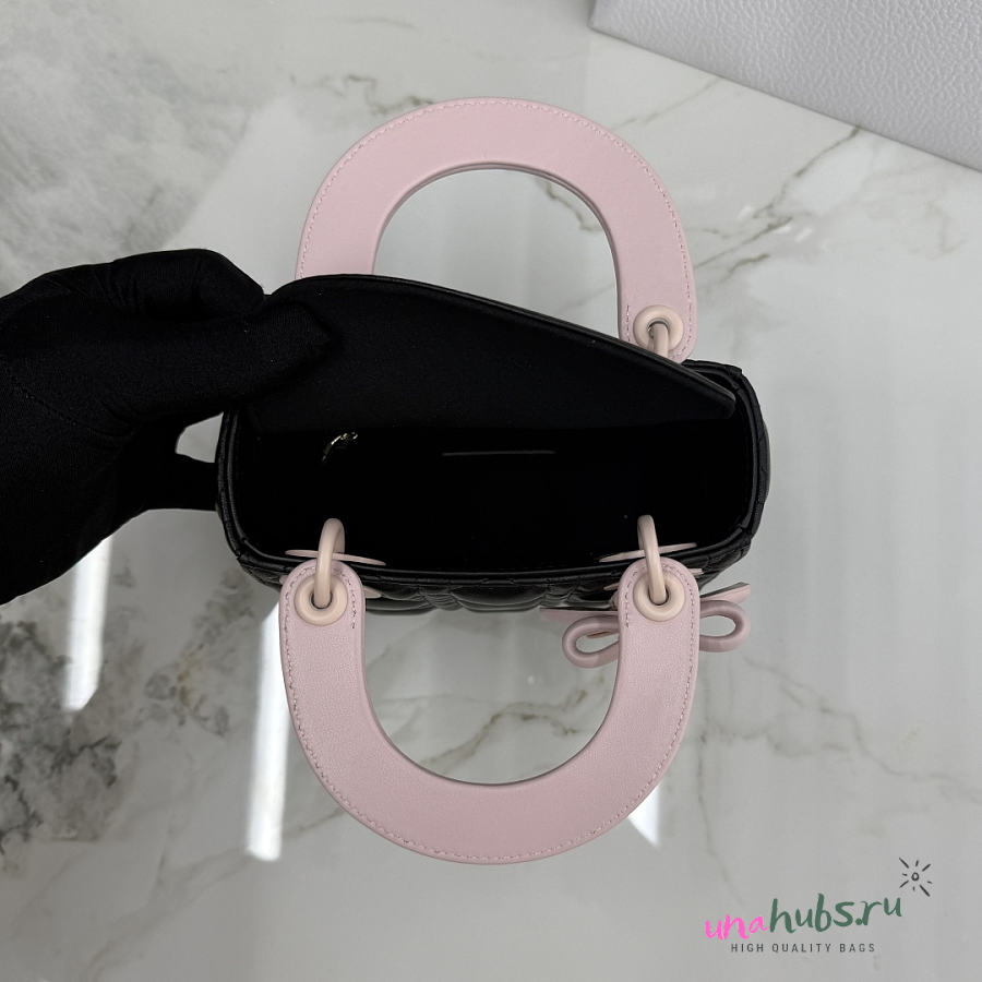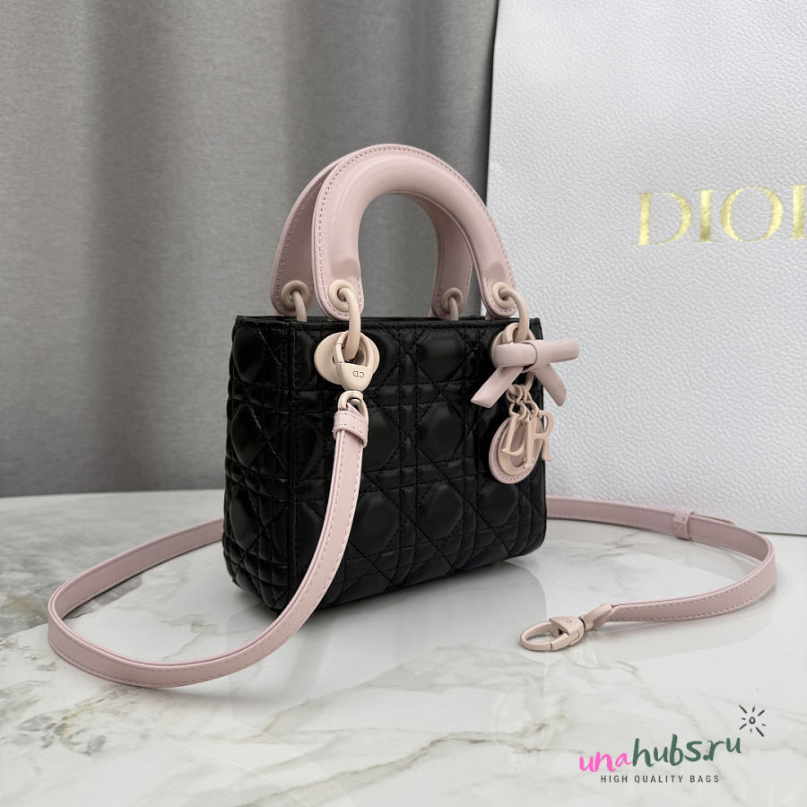 Dior Mini Lady Bag Strap Black and Rose 17x15x7cm - Unahubs