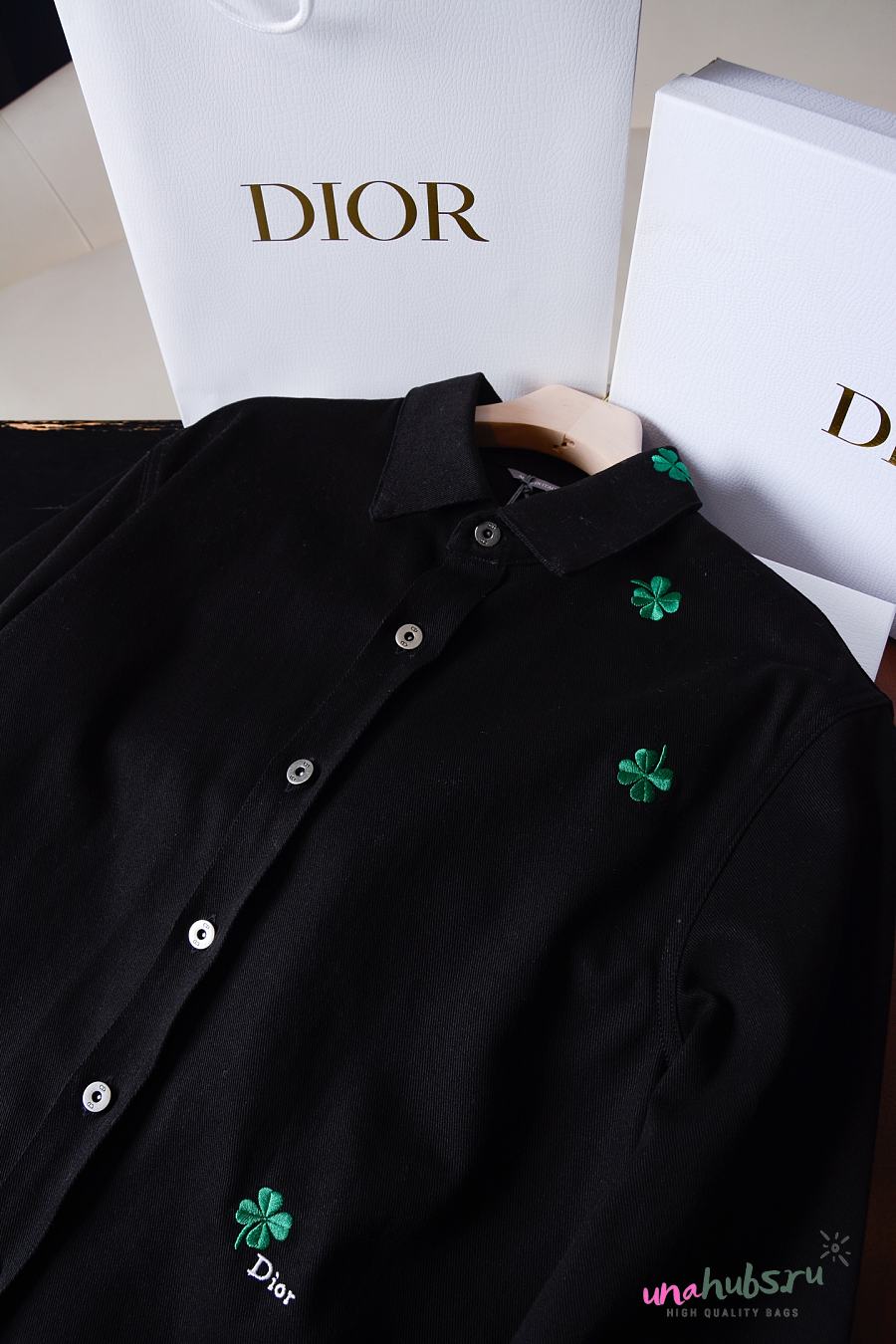 Dior Overshirt with Clover Embroidery Black
