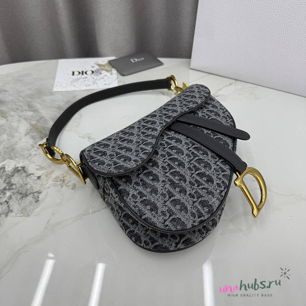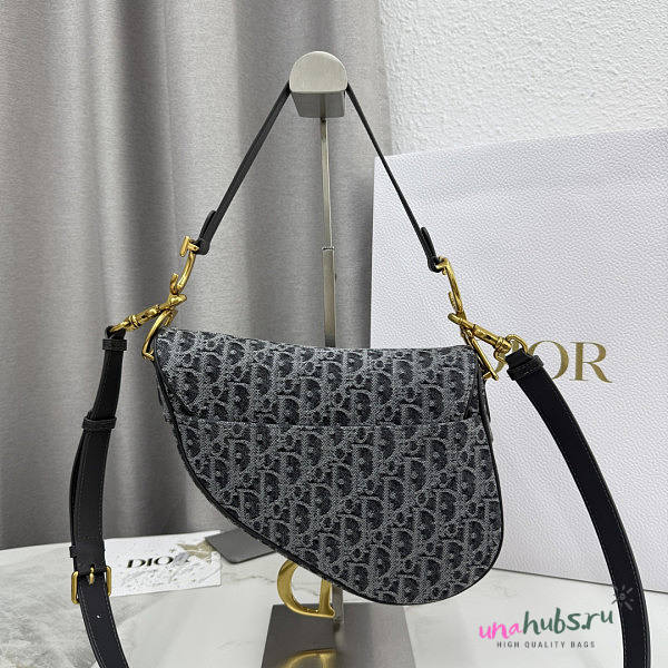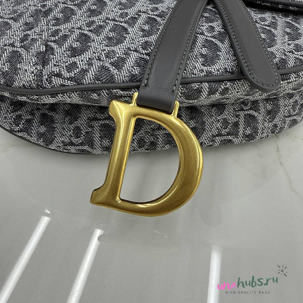 Dior Saddle Bag with Strap Gray Denim 25.5x20x6.5cm