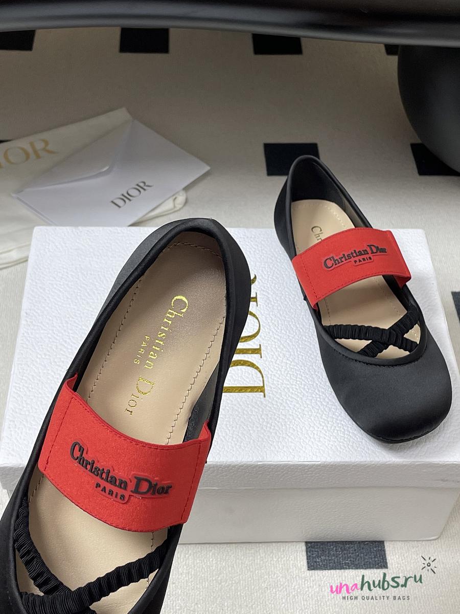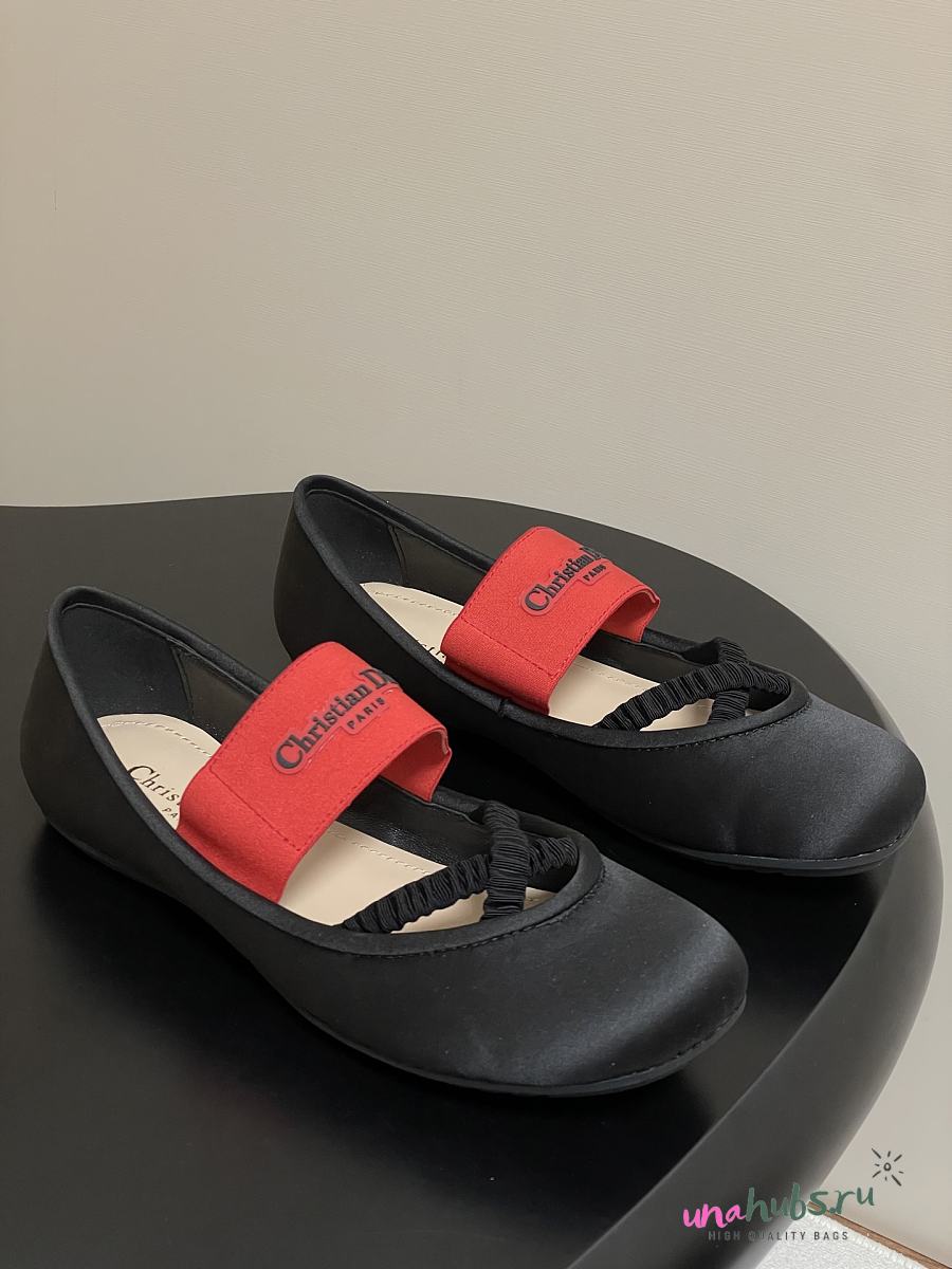 Dior Shade Ballet Flat Black Satin with Red and Black Elastic Straps