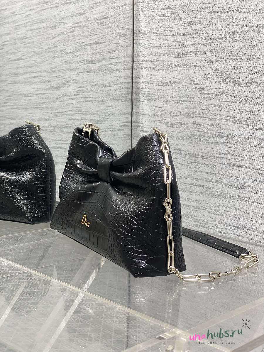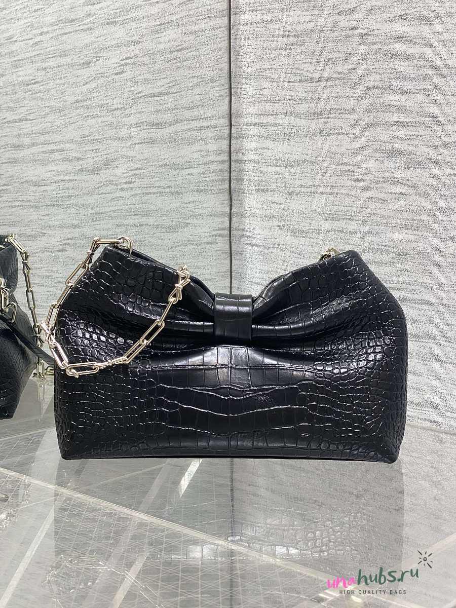 Dior Small Bow Bag Black Crocodile 26x16x10cm