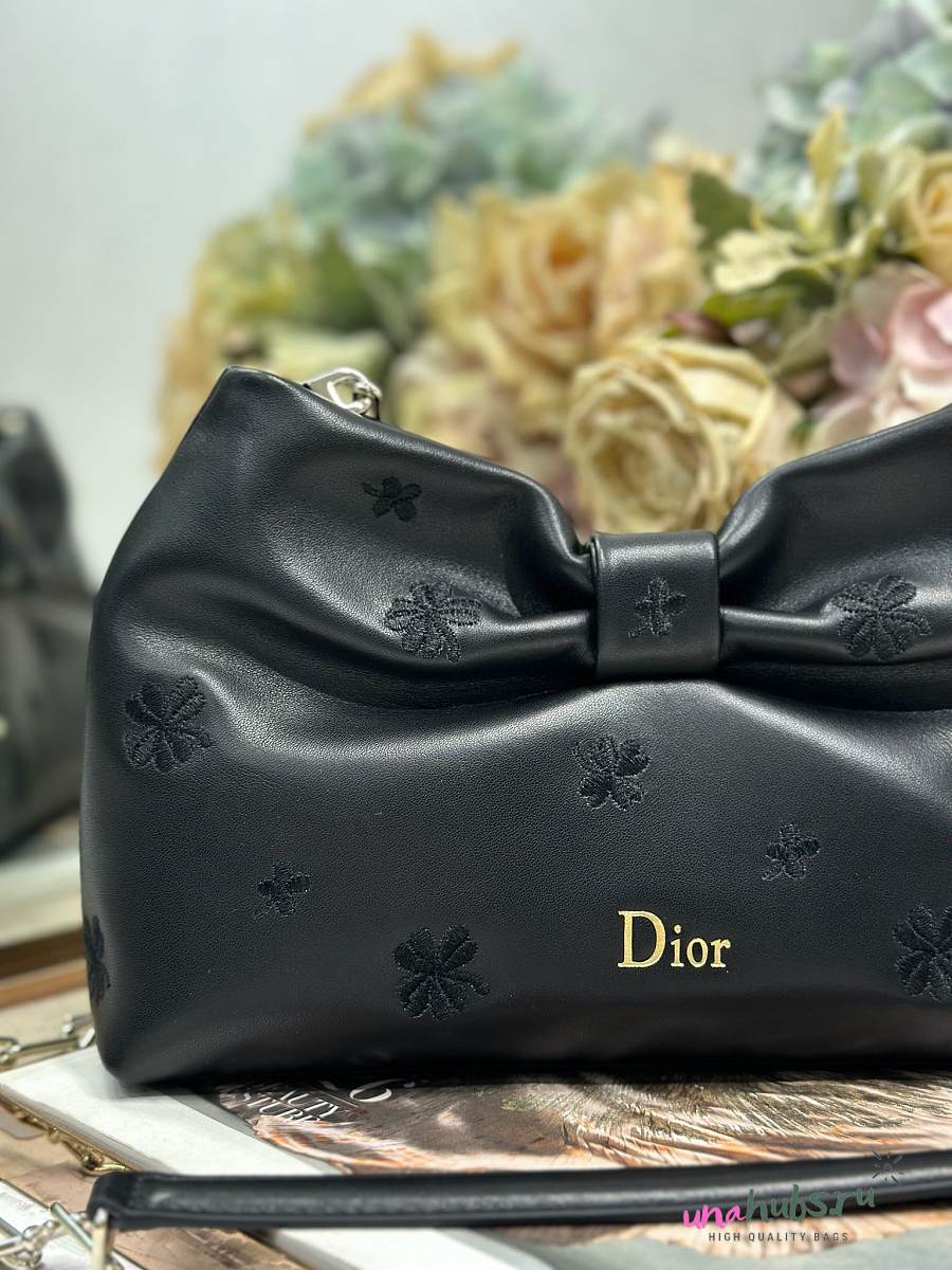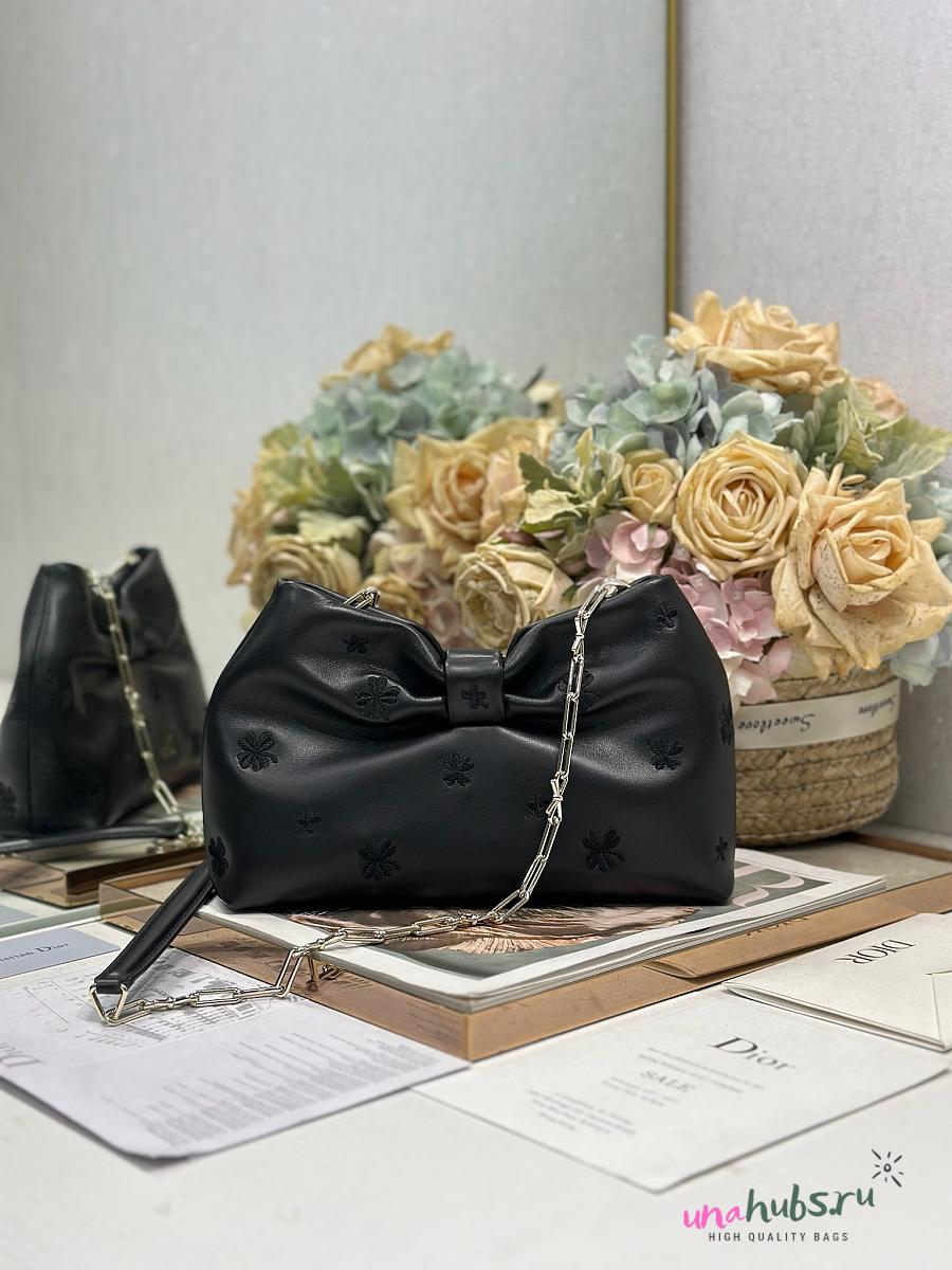 Dior Small Bow Bag Black Dior Clover Lambskin 26x16x10cm - Unahubs