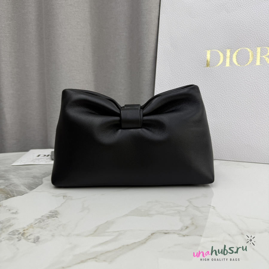 Dior Small Bow Bag Black Lambskin Silver 26x16x10cm