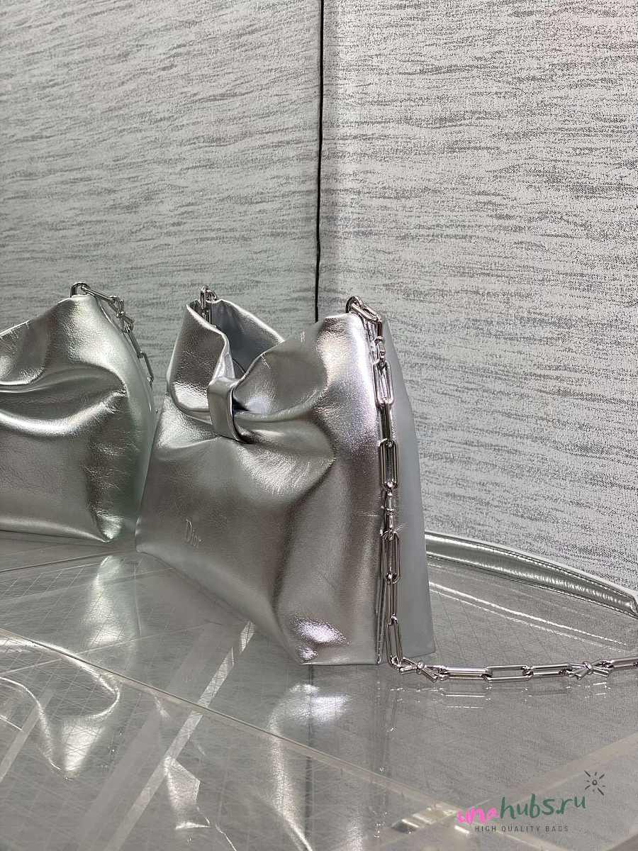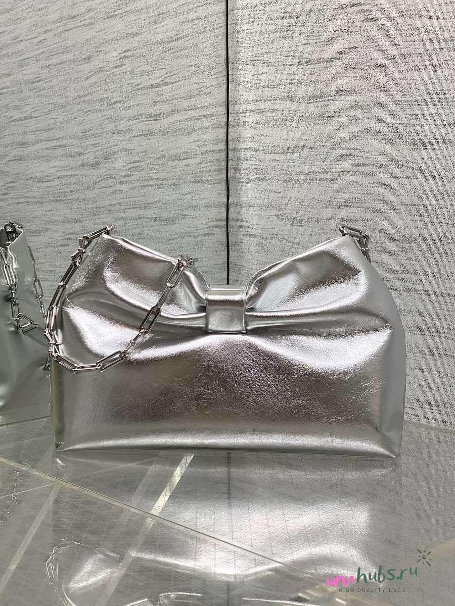 Dior Small Bow Bag Lambskin Silver 26x16x10cm