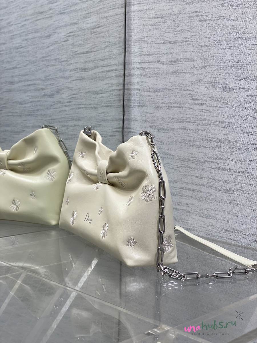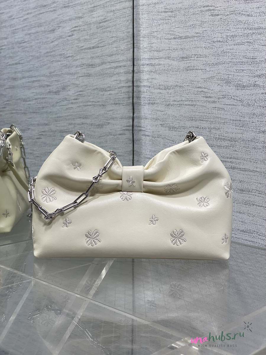 Dior Small Bow Bag White Clover Embroidered 26x16x10cm