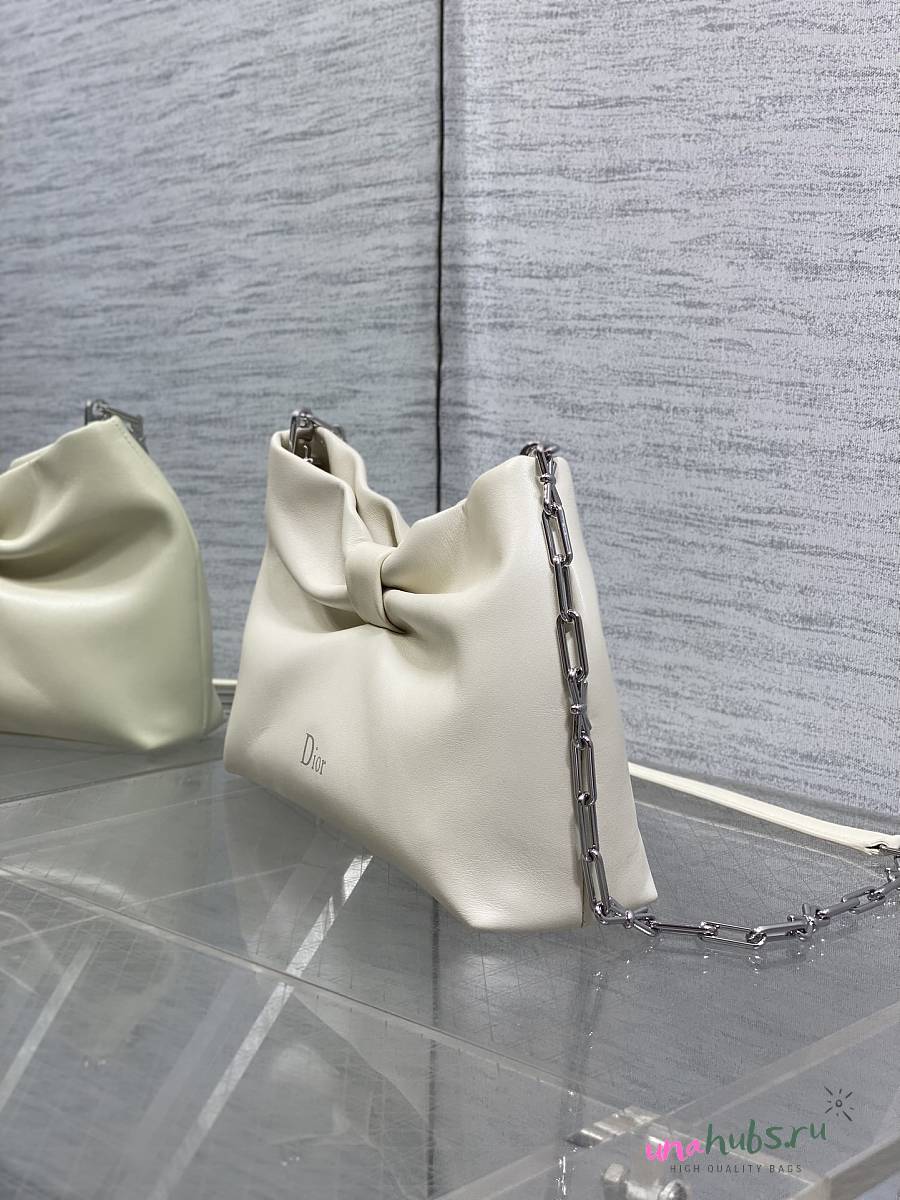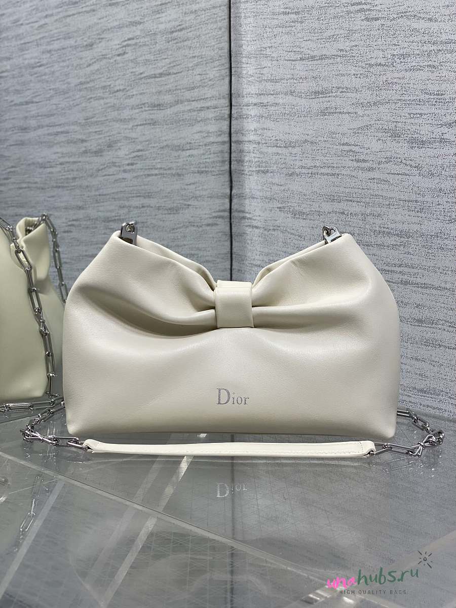 Dior Small Bow Bag White Lambskin Silver 26x16x10cm