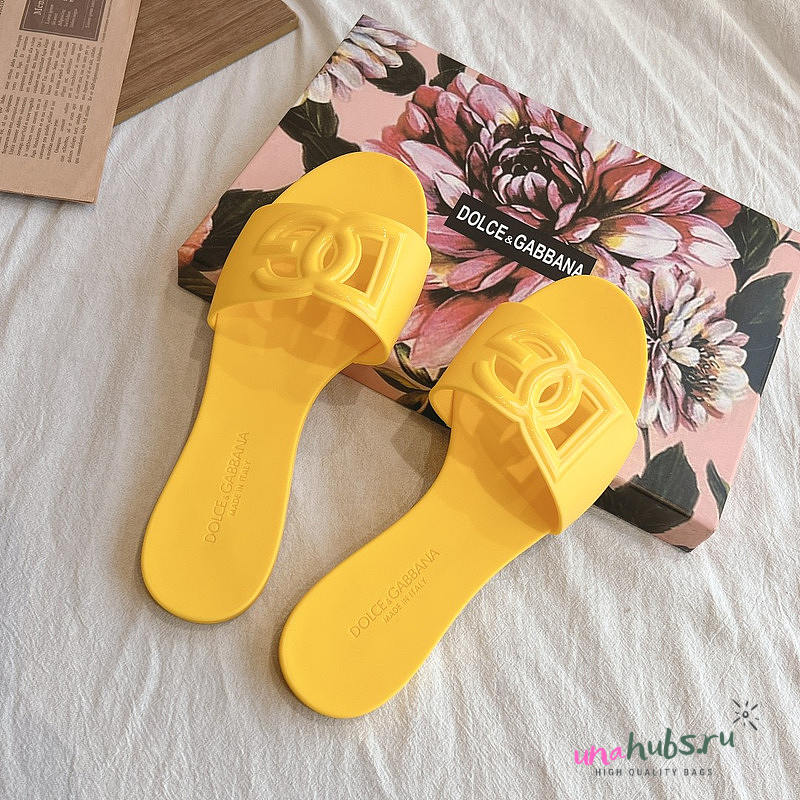 Dolce & Gabbana Rubber Beachwear Sliders Yellow - Unahubs