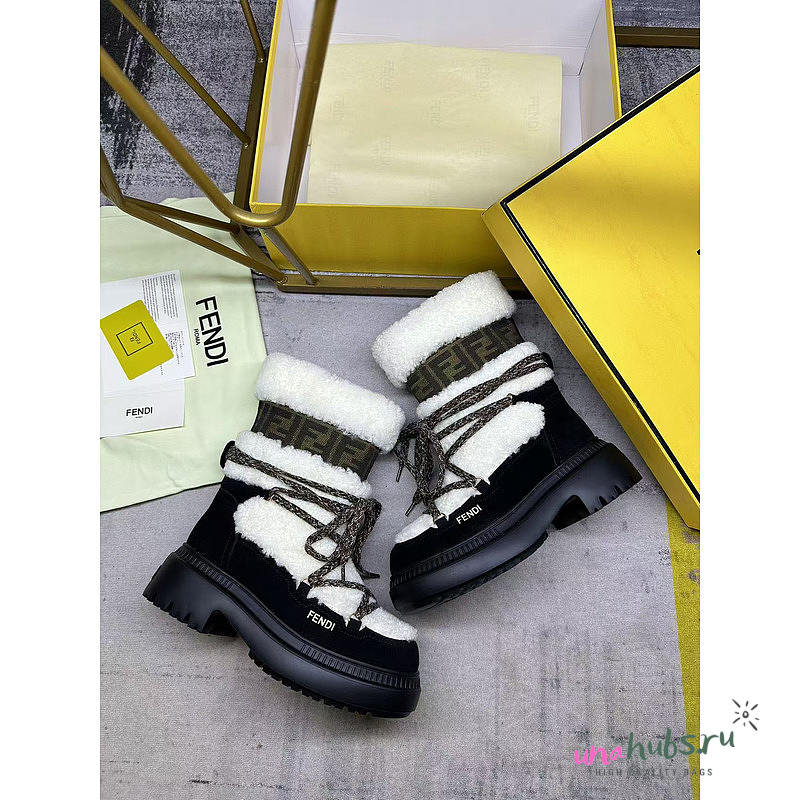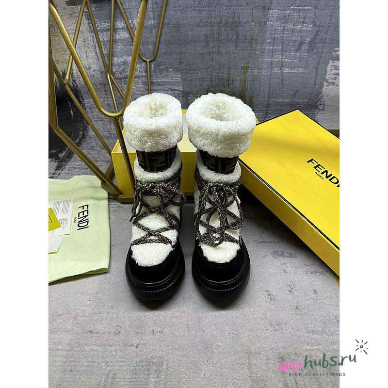 Fendi Apres Chic White Sheepskin And Black Suede Boots