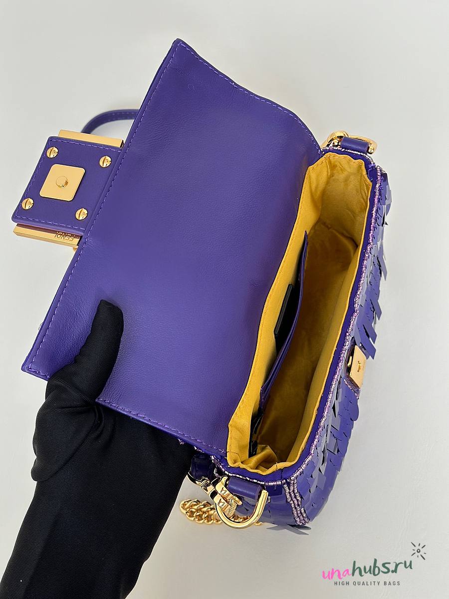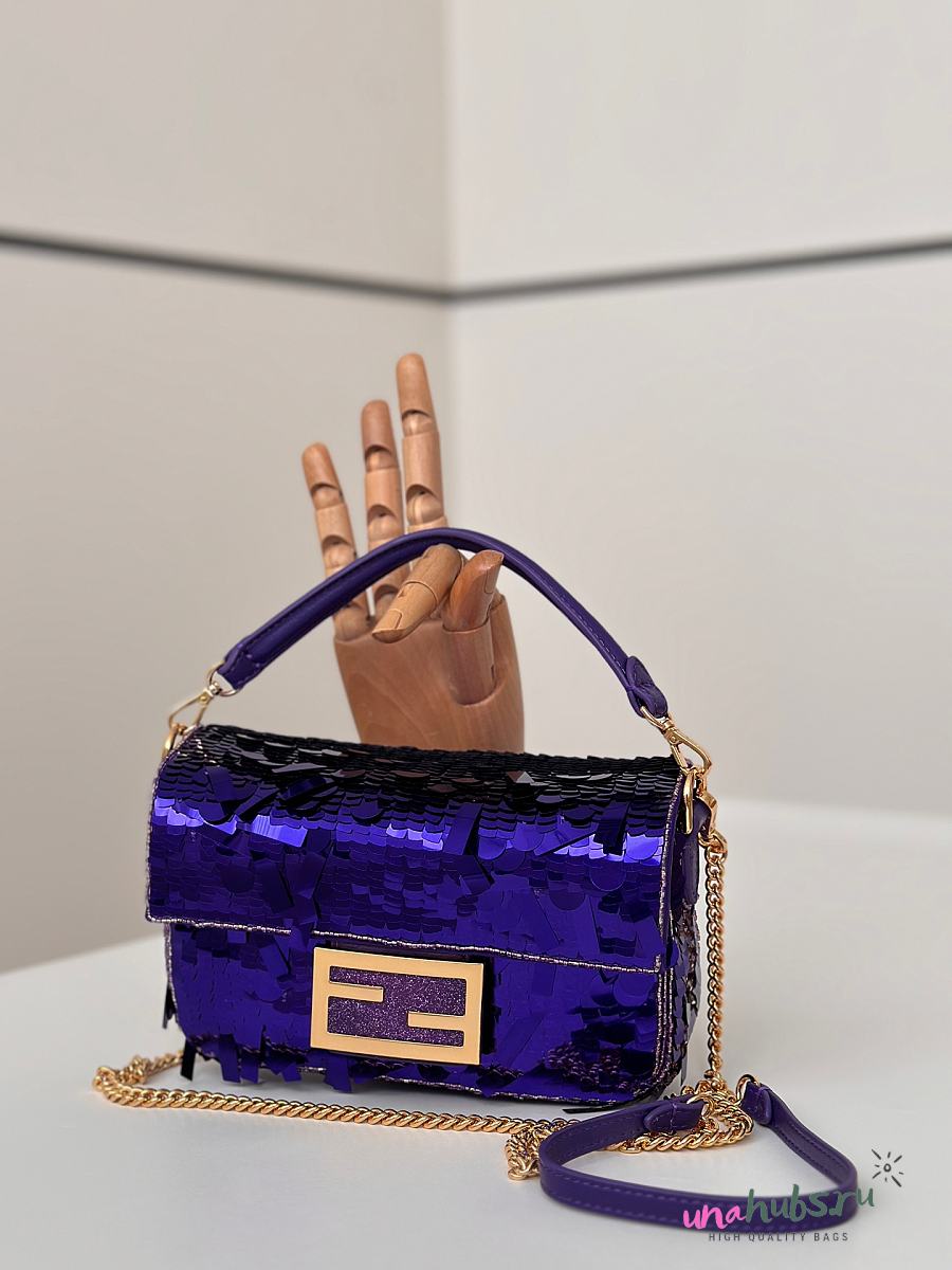Fendi Baguette mini Purple sequin shoulder bag 19x5x11cm