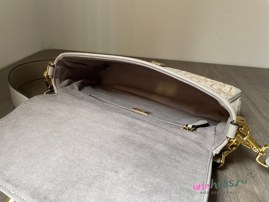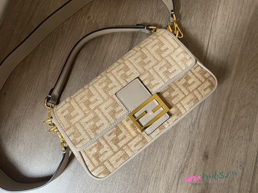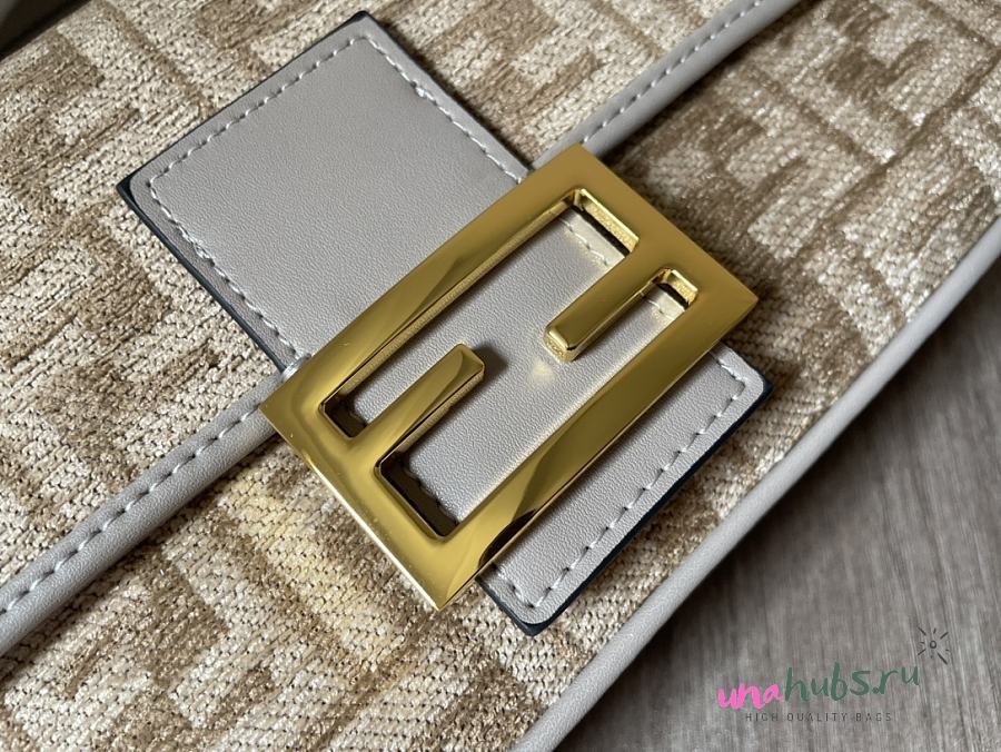 Fendi Baguette Shoulder Bag Grey Beige 27cm